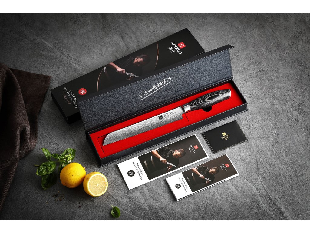 Das Brotmesser XinZuo Ya B20 ist in einer luxuriösen Geschenkbox verpackt und eignet sich somit als ein ideales praktisches Geschenk. Das luxuriöse Design der Geschenkbox und das hochwertige XinZuo Messer im Set wird jeden Beschenkten Freude machen.