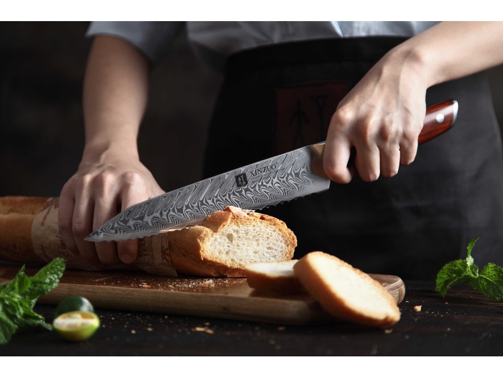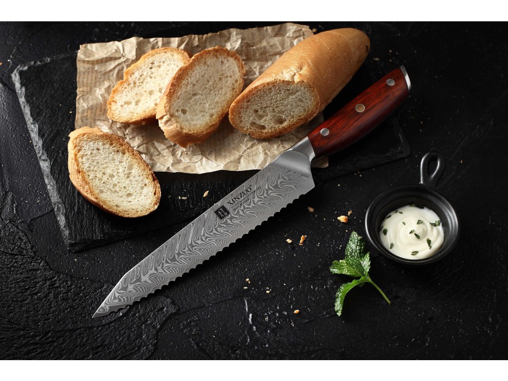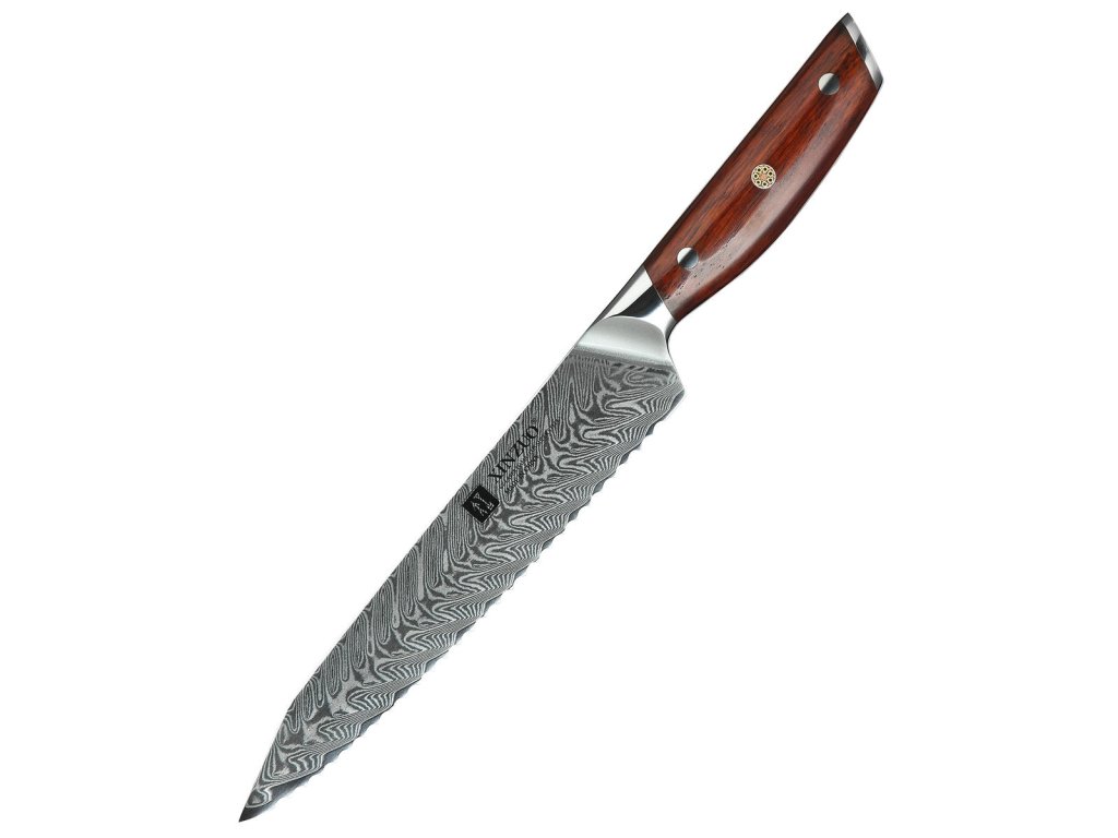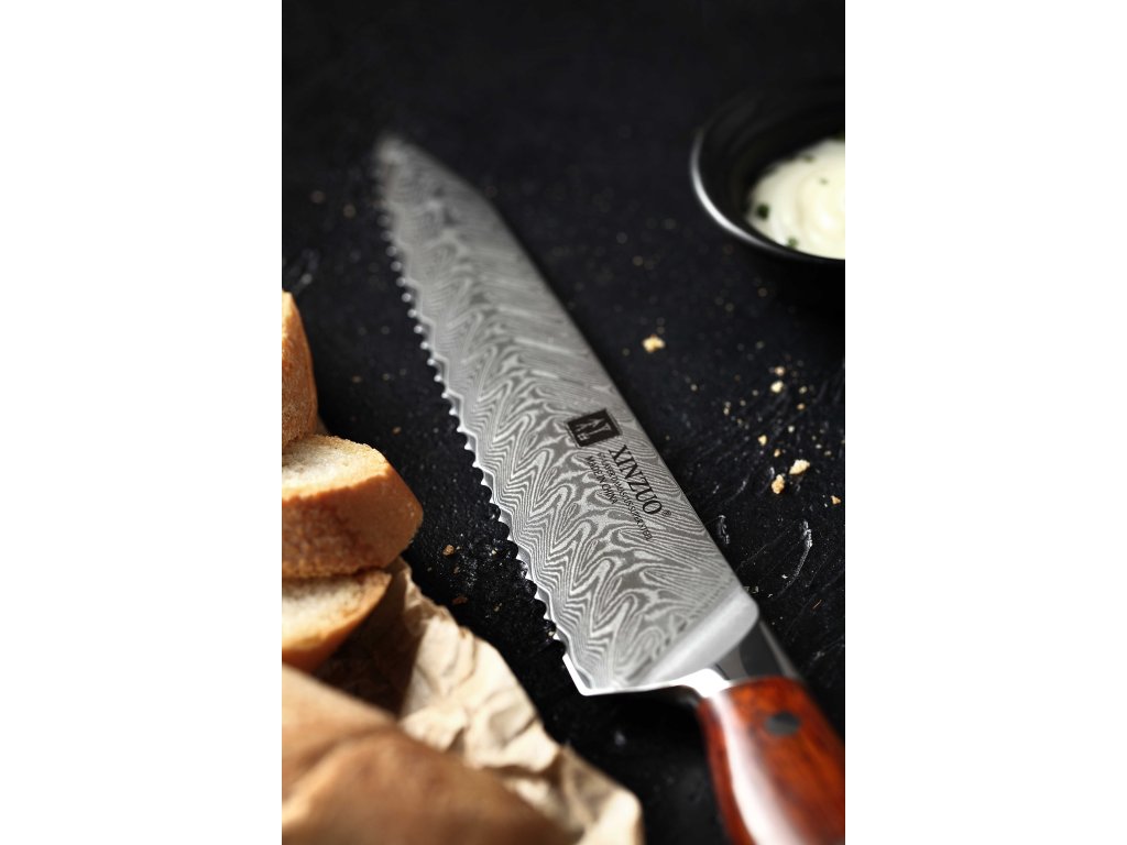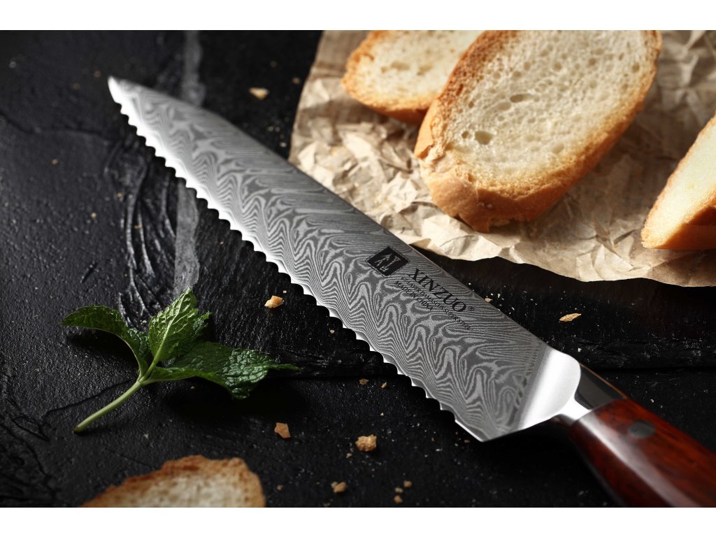 Brotmesser XinZuo Yi B27, 21 cm. Klinge aus Damaszenerstahl und spezielle Form für leichtes Schneiden.