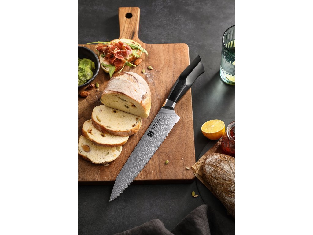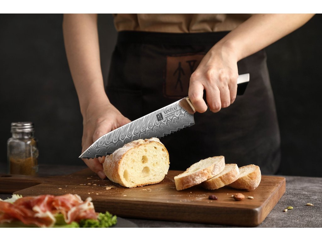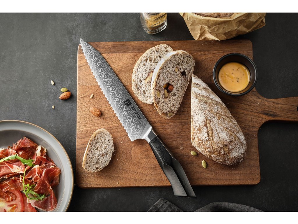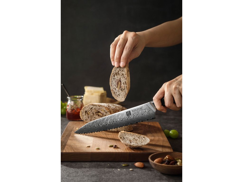 Brotmesser XinZuo aus der beliebten Serie Feng B32 mit 21 cm Damastklinge und hochwertigem Verbundgriff.