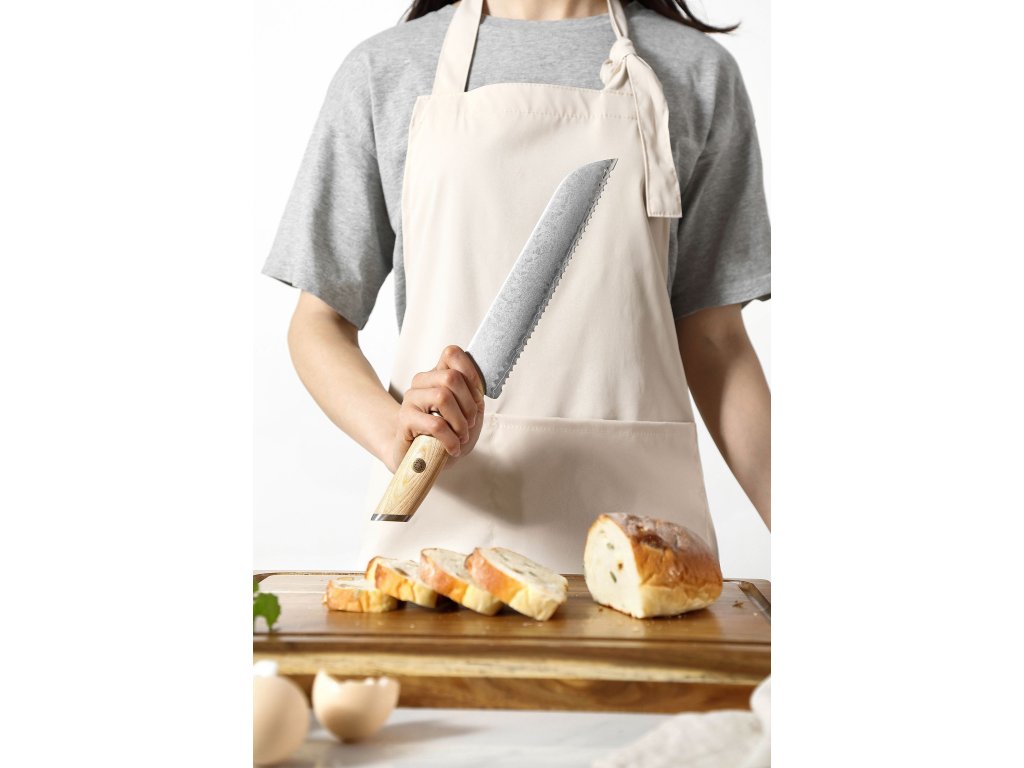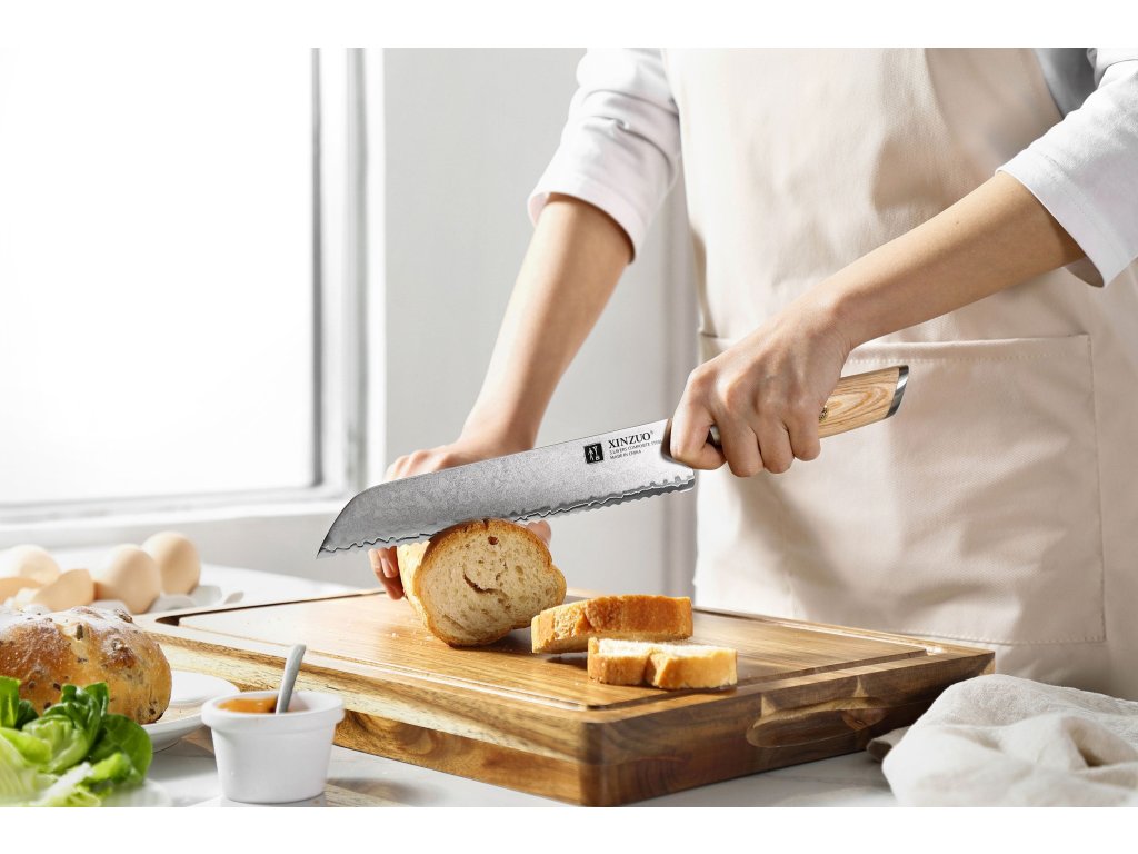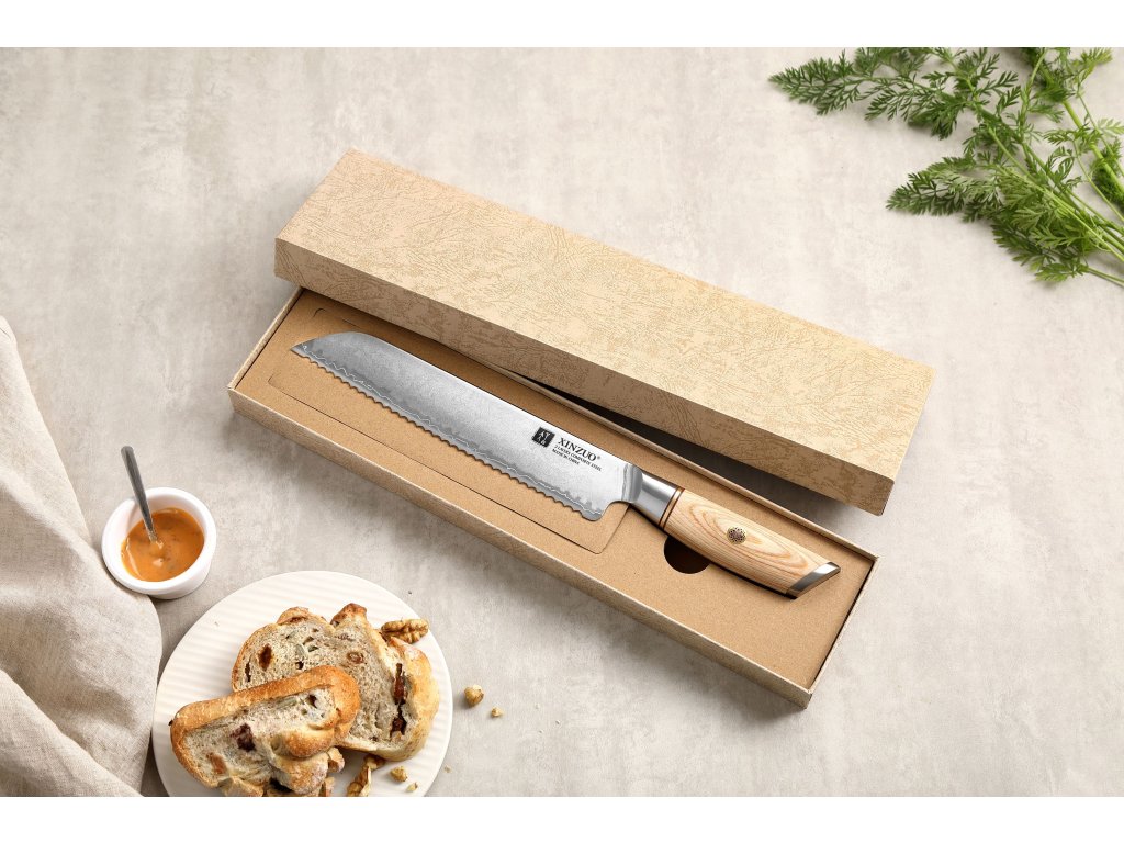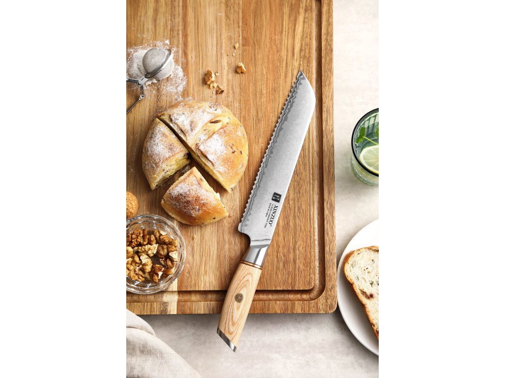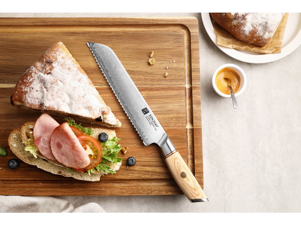 Das Premium Brotmesser XinZuo Lan B37S, 21 cm ist ein Schmuckstück mit Klinge aus Verbundstahl, Griff aus Pakkaholz und hervorragender Ergonomie.