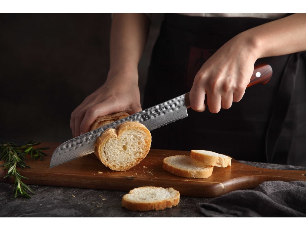 Brotmesser - Präzises Schneiden von Gebäck, ohne Krümeln oder Quetschen. Dieses Spezialmesser garantiert einfachstes Schneiden von Brot selbst mit der feinsten Kruste. Dank der langen Klinge und des speziellen Wellenschliffs lassen sich frisches Brot, knusprige Baguetten und zarte Brötchen mühelos aufschneiden - ohne unnötiges Quetschen, Aufreißen oder Krümeln. Der ideale Partner für alle, die perfekt geschnittenes Gebäck lieben.