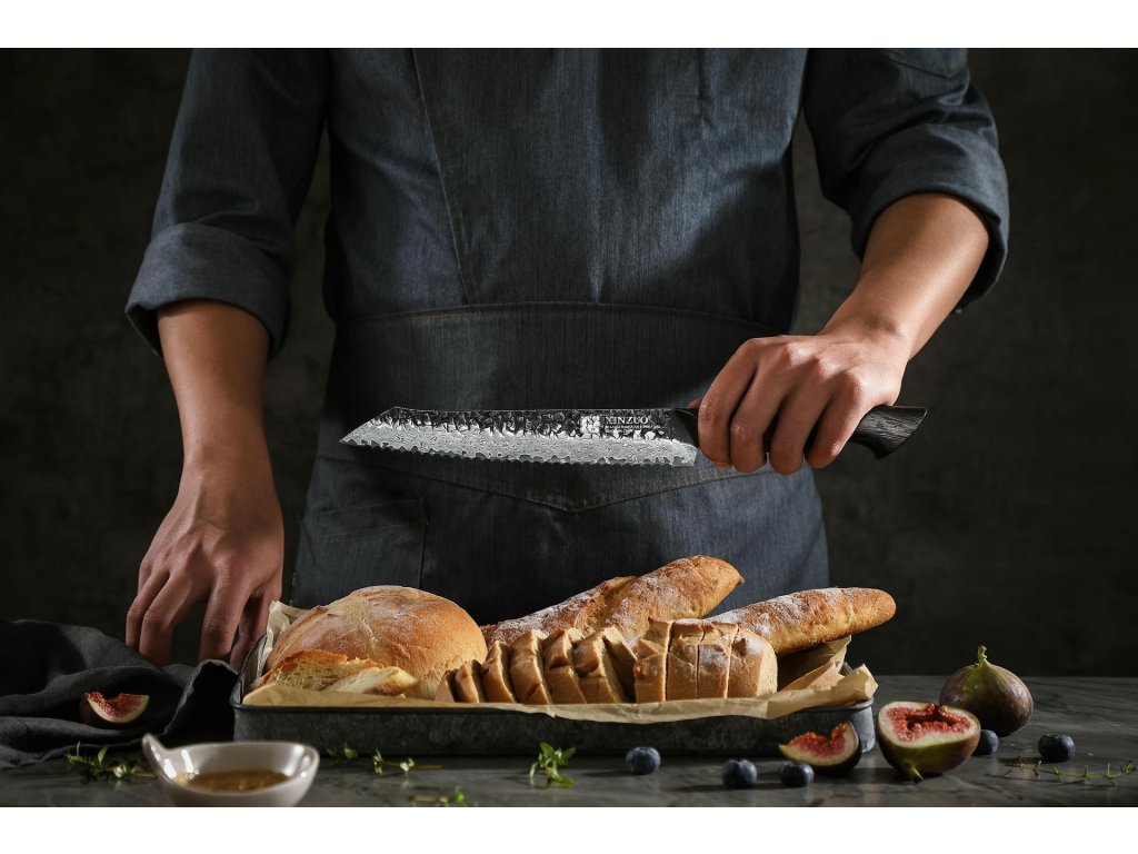 Brotmesser - Präzises Schneiden von Gebäck, ohne Krümeln oder Quetschen. Dieses Spezialmesser garantiert einfachstes Schneiden von Brot selbst mit der feinsten Kruste. Dank der langen Klinge und des speziellen Wellenschliffs lassen sich frisches Brot, knusprige Baguetten und zarte Brötchen mühelos aufschneiden - ohne unnötiges Quetschen, Aufreißen oder Krümeln. Der ideale Partner für alle, die perfekt geschnittenes Gebäck lieben.