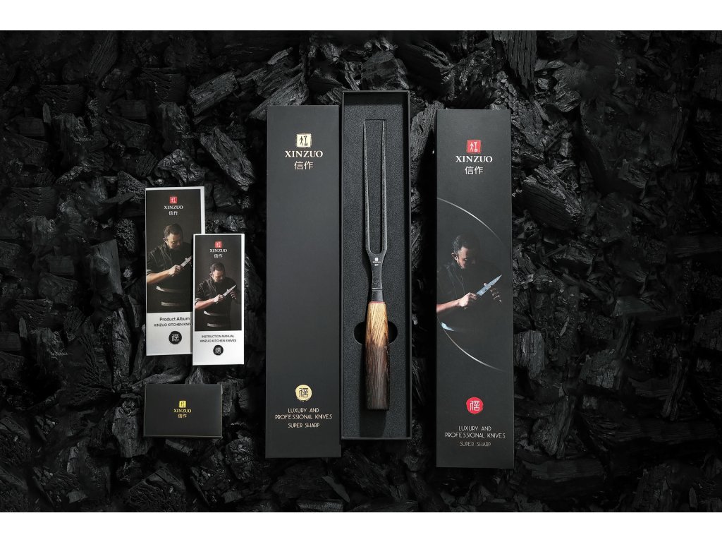 Die XinZuo-Fleischgabel aus der Serie Mo ist in einer luxuriösen Geschenkbox in Schwarz verpackt. Dient als ideales Geschenk für verschiedene Anlässe und Jubiläen.