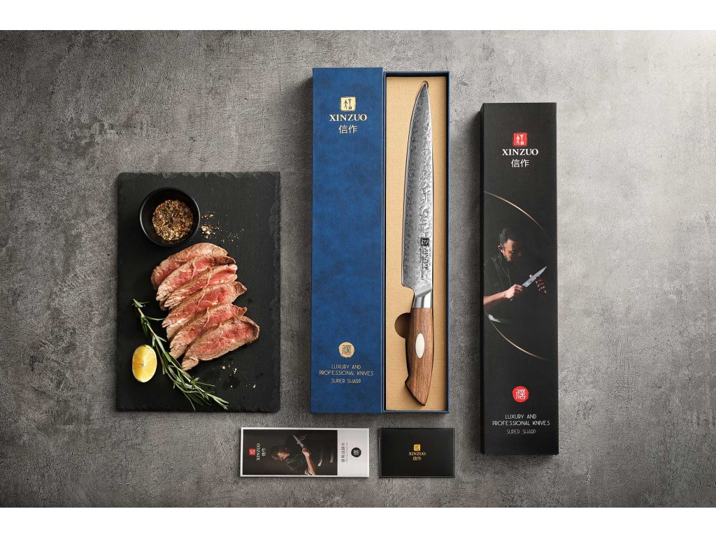 Das Fleischmesser XinZuo Jiang B46W ist in einer luxuriösen Geschenkbox verpackt und eignet sich somit als ein ideales praktisches Geschenk. Das luxuriöse Design der Geschenkbox und das hochwertige XinZuo Messer im Set wird jeden Beschenkten Freude machen.