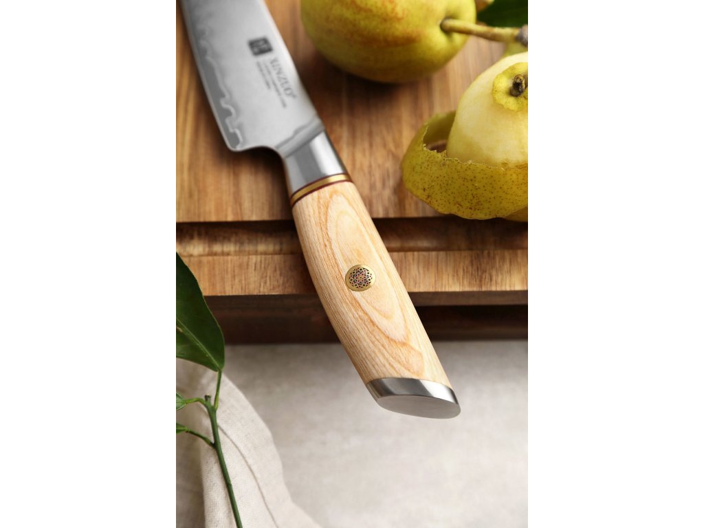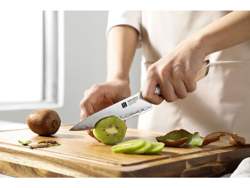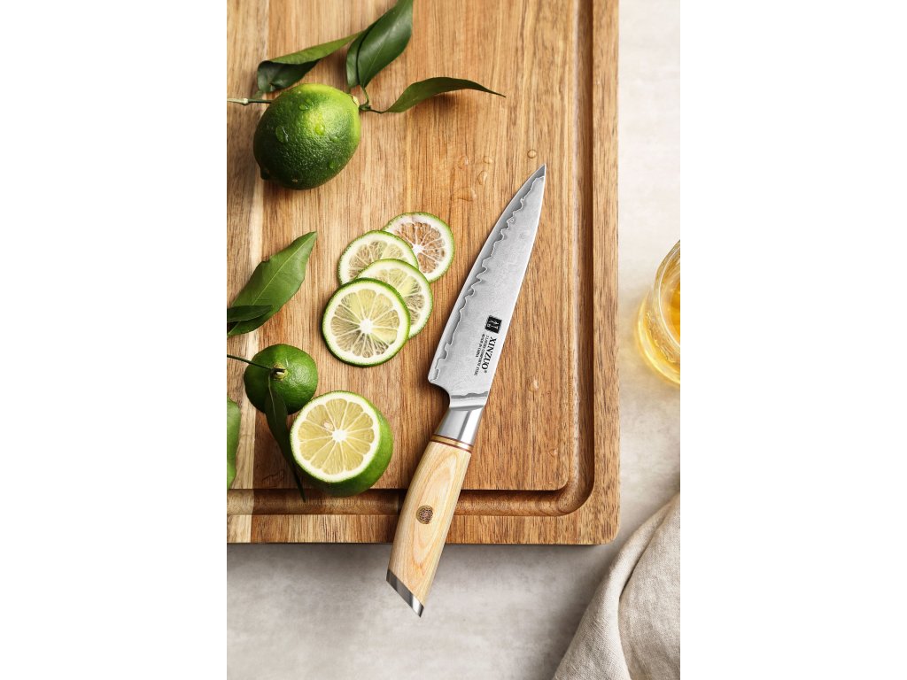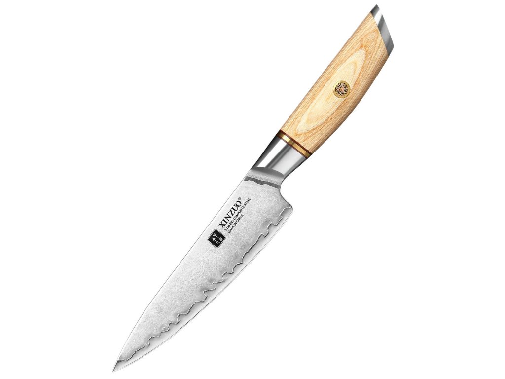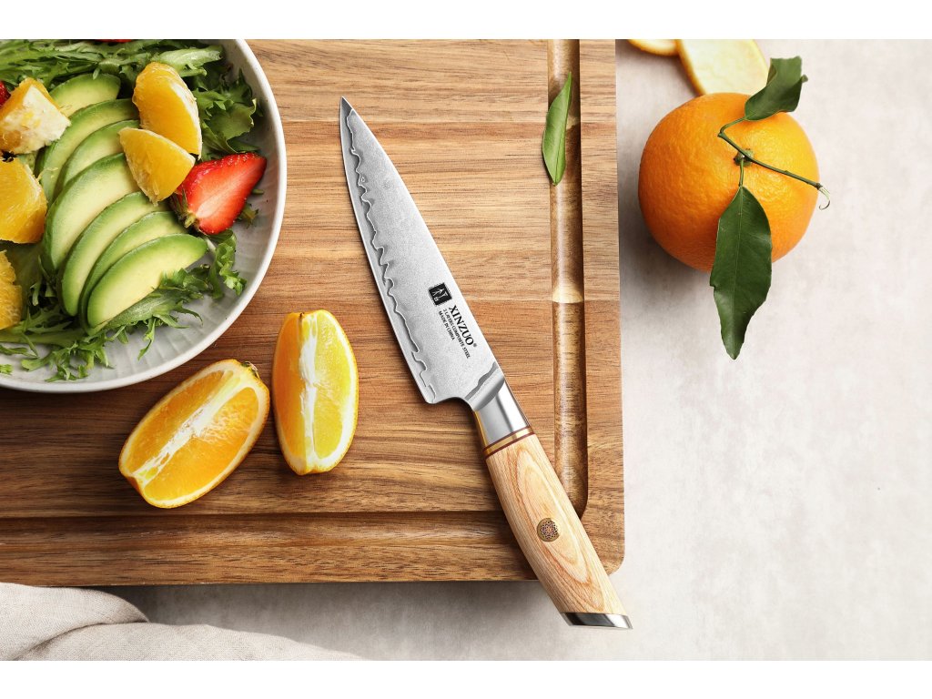 Premium Obst - und Gemüsemesser XinZuo Lan B37S, 13 cm ist ein Schmuckstück mit Klinge aus Verbundstahl, Griff aus Pakkaholz und hervorragender Ergonomie.