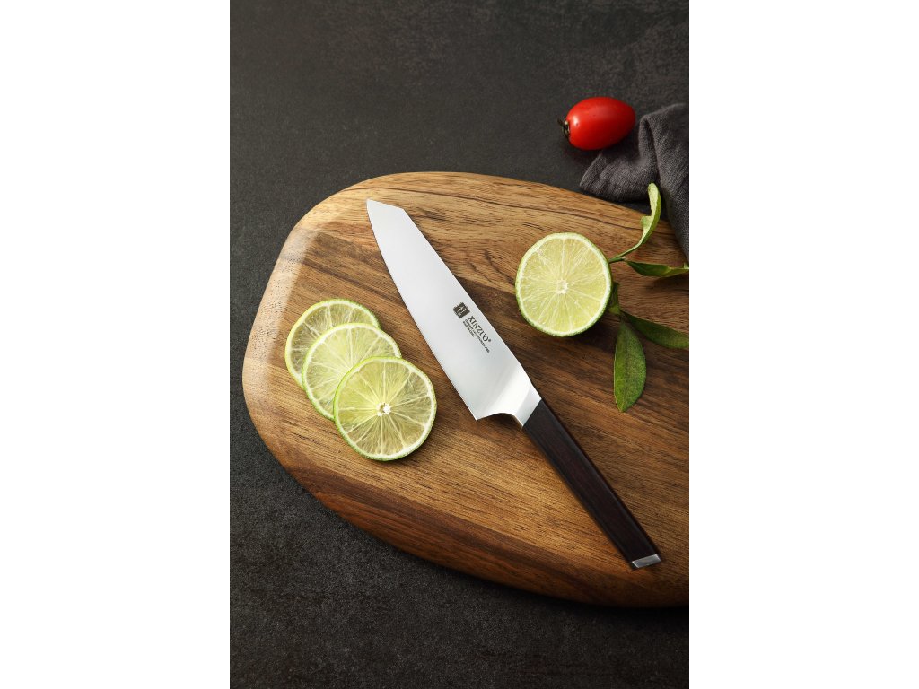 Merkwürdigkeit: Als ein führender Innovator in der Herstellung von Küchenmessern kombiniert XinZuo traditionelle und modernste Fertigungstechniken. Dank der hochmodernen Vakuum-Wärmebehandlungsmethode haben XinZuo Küchenmesser eine höhere Härte und Schärfe sowie eine längere Lebensdauer als Messer, die nur durch herkömmliche Wärmebehandlung hergestellt werden. Gepaart mit dem traditionellen letzten Schleifen der Messer von Hand durch Messermachermeister, deren über Generationen weitergegebenes Können von keiner Maschine übertroffen wird, haben XinZuo Küchenmesser eine erstklassige Schärfe, die maschinell geschliffene Messer nie erreichen können.