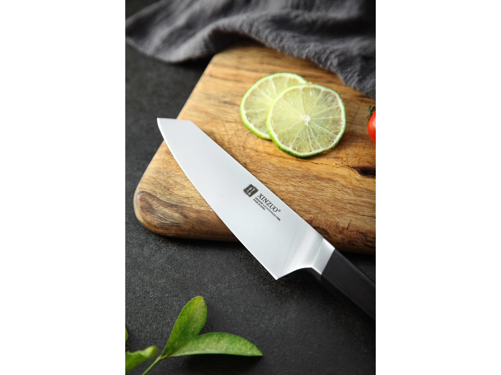 Hochwertiges Gemüsemesser XinZuo Rui B5 13 cm aus massivem deutschem Stahl und Ebenholzgriff zum einfachen Schneiden von Obst und Gemüse.