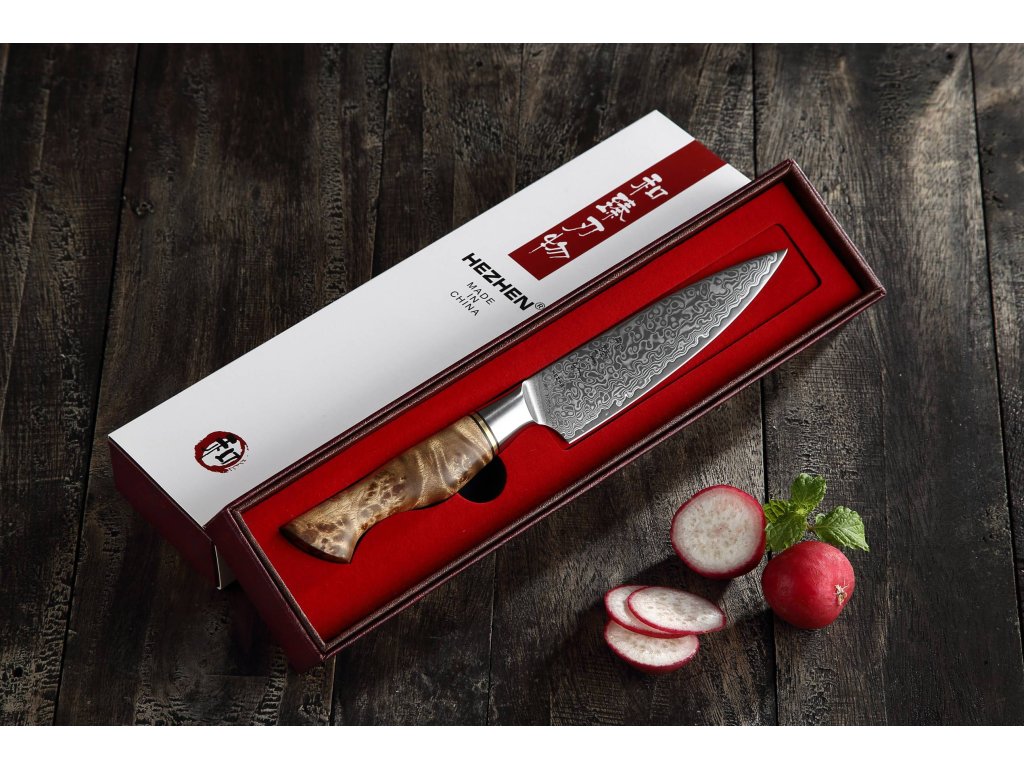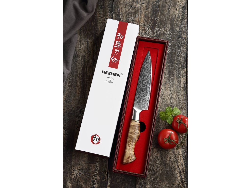 Das Damast Gemüsemesser HEZHEN Master B30 ist in einer luxuriösen Geschenkbox verpackt, die es zu einem idealen praktischen Haushaltsgeschenk macht. Geeignet als Geschenk für eine Hochzeit, Einzugsfeier, einen Geburtstag, ein Fest oder einen üblichen Besuch. Dank ihrem luxuriösen Design ist die Geschenkbox und das elegante Messer HEZHEN mit seinem einzigartigen Griff von XinZuo wird sie jedem Beschenkten Freude machen.