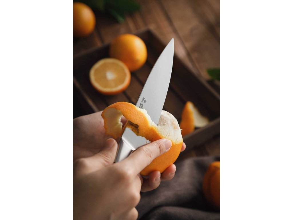 Obst- und Gemüsemesser - Präzises Schneiden ohne Saftverlust. Dieses Messer eignet sich mit seiner kurzen Klinge für präzises Schneiden von Obst und Gemüse. Dank der kompakten Klingengröße lassen sich auch kleinere Zutaten problemlos bearbeiten. Sie lassen sich gleichmäßig und präzise schneiden, ohne Faltenbildung, Beschädigung oder unnötigen Verlust von vitaminreichen Säften. Mit der von unseren Messerschmieden handgeschliffenen Klinge können Sie Obst und Gemüse schnell, effizient und ohne Kompromisse zerteilen.