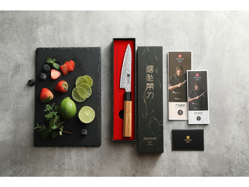 Das Gemüsemesser XinZuo Zhen PM8O ist in einer luxuriösen Geschenkbox verpackt und eignet sich somit als ein ideales praktisches Geschenk. Das luxuriöse Design der Geschenkbox und das hochwertige XinZuo Messer im Set wird jeden Beschenkten Freude machen.