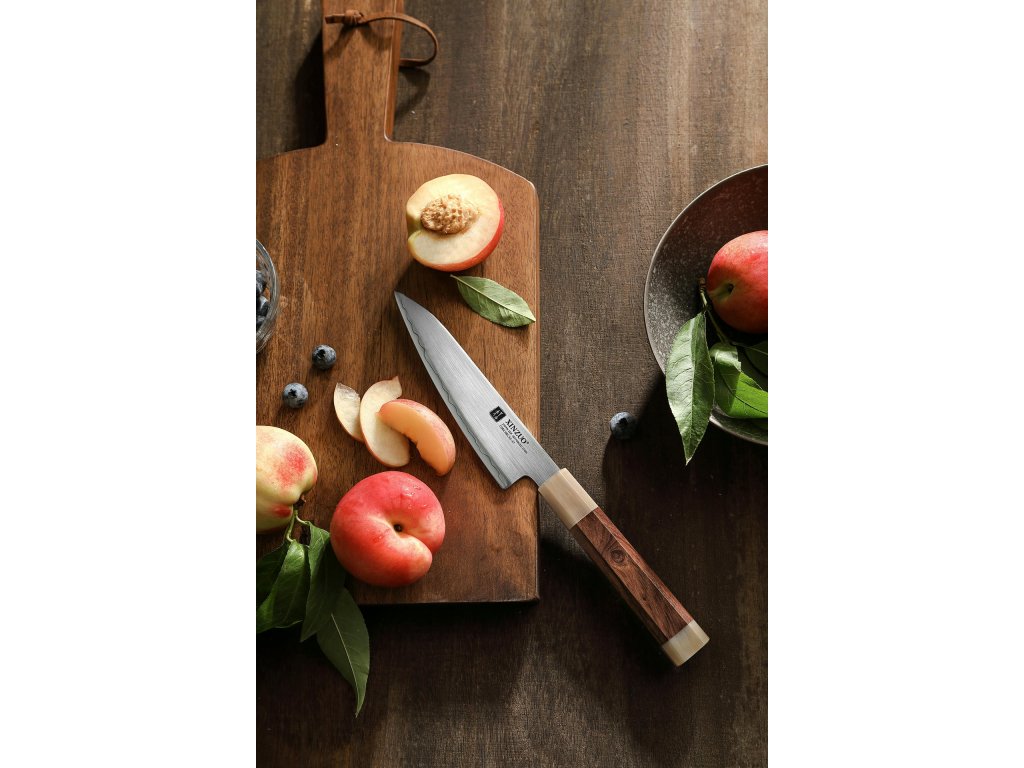 Das Gemüsemesser Zhen X05Z stammt aus der traditionellen chinesischen Messerstadt Yangjiang, wo seit Jahrhunderten die feinsten Messer hergestellt werden. Die lokalen Messerschmiede haben ihre Fertigkeiten in der Messerherstellung und -bearbeitung von Generation zu Generation weitergegeben. XinZuo nutzt das Beste aus der modernen und traditionellen Messerherstellung, um dieses Messer herzustellen. Jedes Messer von XinZuo ist dank der abschließenden manuellen Präzisionsbearbeitung ein Unikat.