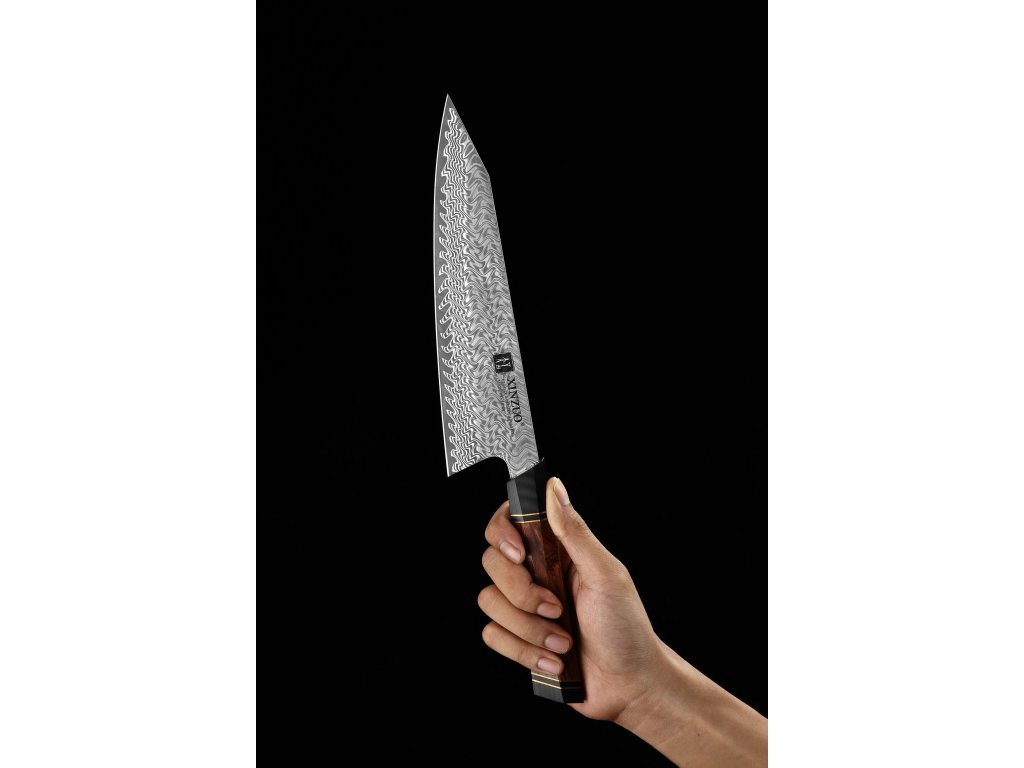 Dieses Bunka ist aus hochwertigem Damaszener Stahl gefertigt, der für die Herstellung der besten Messer verwendet wird. Die Messerklinge mit einer Härte von 60±2 Rockwell besteht aus 67 Lagen. Hochwertiger Stahl in einer Kombination von traditioneller Herstellung garantiert eine lange Lebensdauer des Messers. Die Oberfläche des Messers bietet beim Schneiden Komfort, ohne dass es reibt oder dass die Zutaten an die Klinge pappen. Der Farbton des Musters auf der Klinge kann unterschiedlich sein, da jedes Messer durch das Stahlschichten einzigartig ist. Die Klinge des Messers wird von Messerschmieden auf beiden Seiten in einem Winkel von 15° wird traditionell von Hand nassgeschliffen.