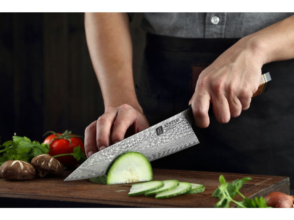 Merkwürdigkeit: Als ein führender Innovator in der Herstellung von Küchenmessern kombiniert XinZuo traditionelle und modernste Fertigungstechniken. Dank der hochmodernen Vakuum-Wärmebehandlungsmethode haben XinZuo Küchenmesser eine höhere Härte und Schärfe sowie eine längere Lebensdauer als Messer, die nur durch herkömmliche Wärmebehandlung hergestellt werden. Gepaart mit dem traditionellen letzten Schleifen der Messer von Hand durch Messermachermeister, deren über Generationen weitergegebenes Können von keiner Maschine übertroffen wird, haben XinZuo Küchenmesser eine erstklassige Schärfe, die maschinell geschliffene Messer nie erreichen können.