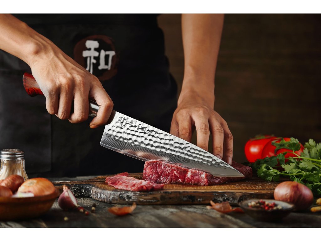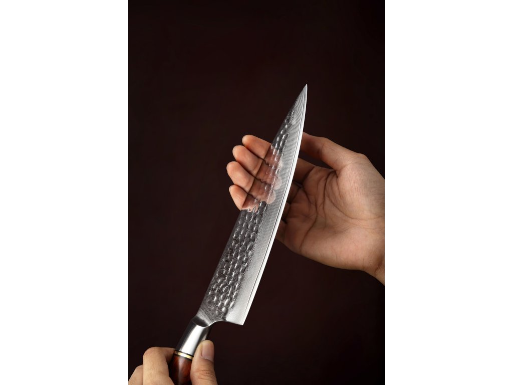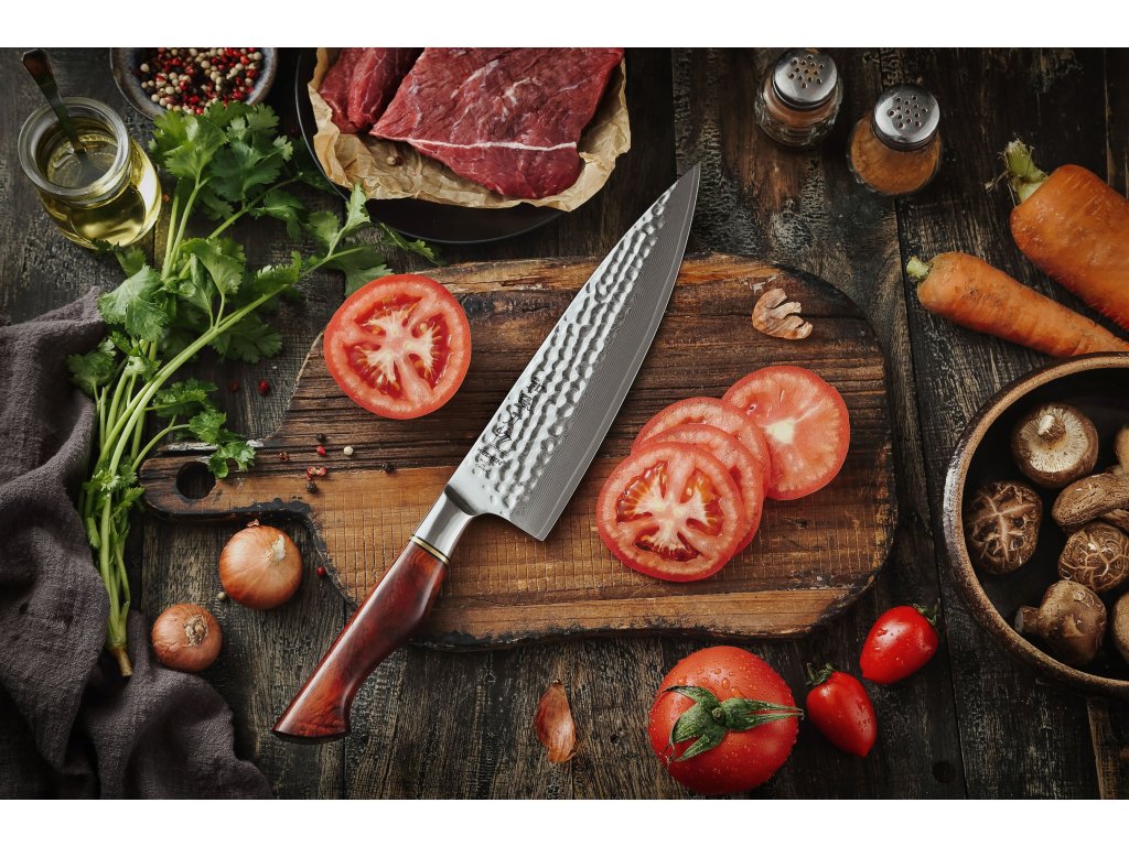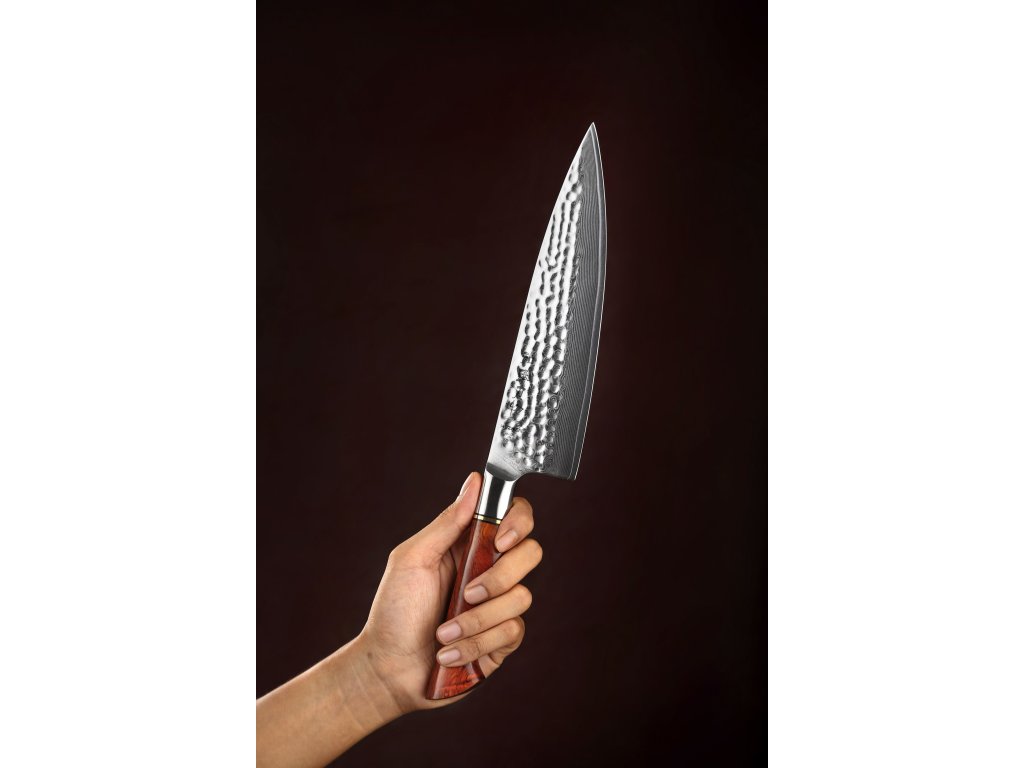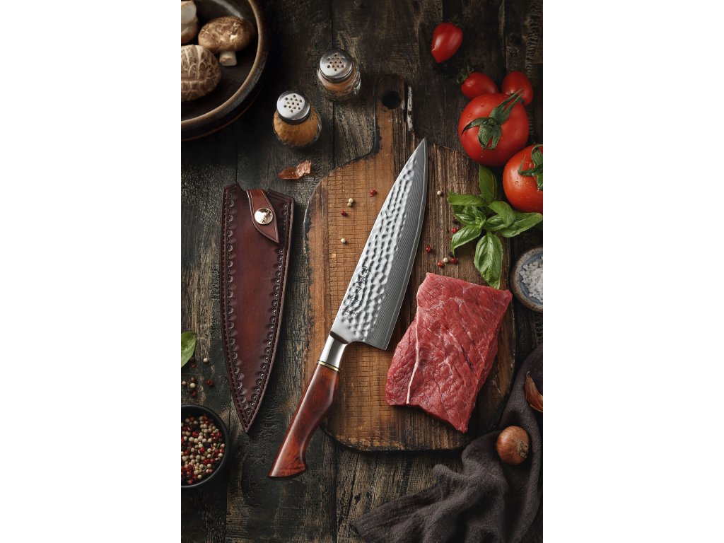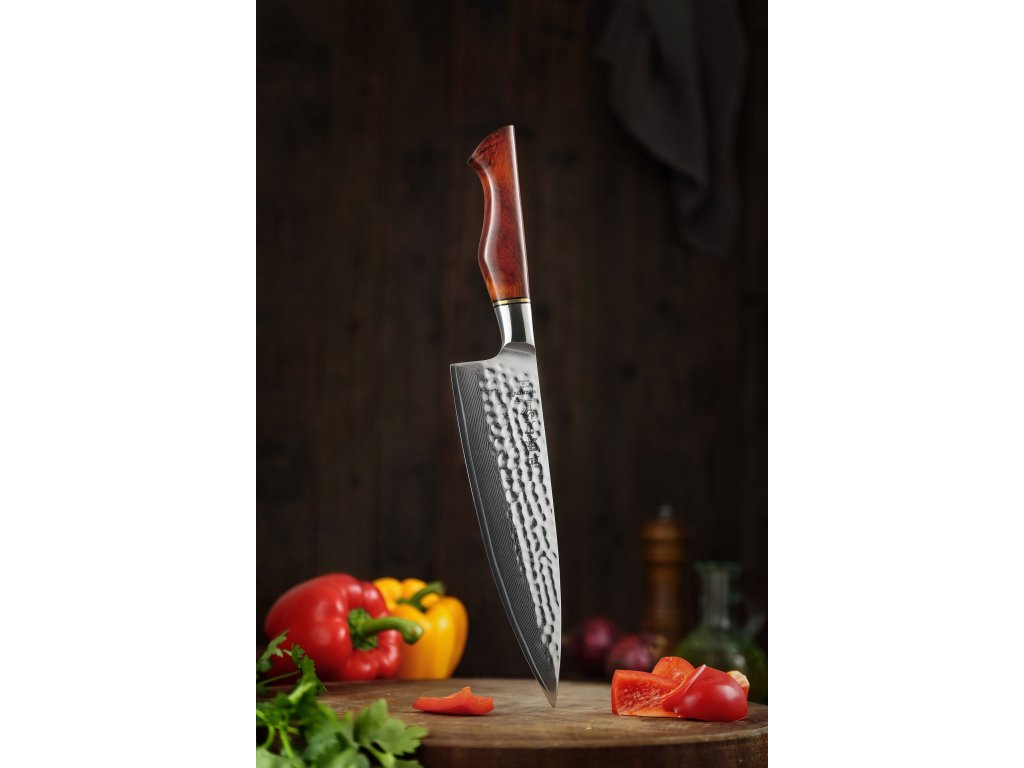 Hochwertiges Kochmesser HEZHEN Master B30R 21 cm von XinZuo mit Damastklinge, Handschliff und einzigartigem Kunstgriff.