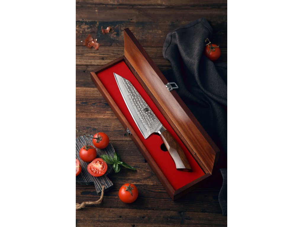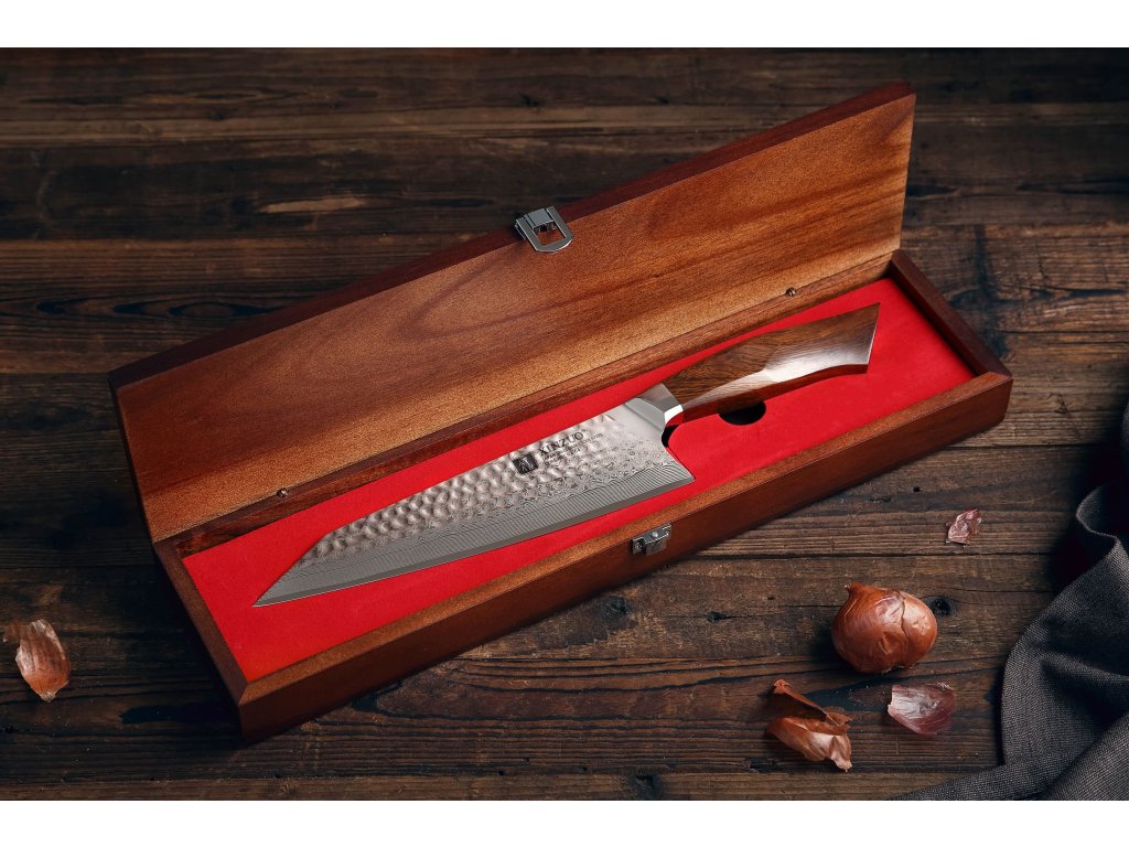 Das Kochmesser XinZuo Feng B32D ist in einer luxuriösen Holzbox verpackt und somit ein ideales praktisches Geschenk. Die Holzbox beeindruckt den Beschenkten oder Sie allein schon durch ihr elegantes Design, geschweige dass Sie sie öffnen und das XinZuo-Messer zum ersten Mal sehen. Die Holzbox eignet sich auch für die langfristige, klingenschonende Aufbewahrung.