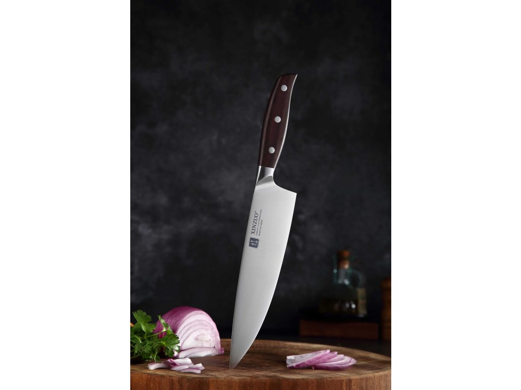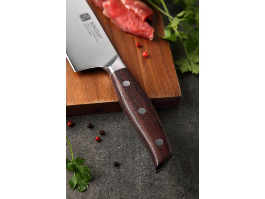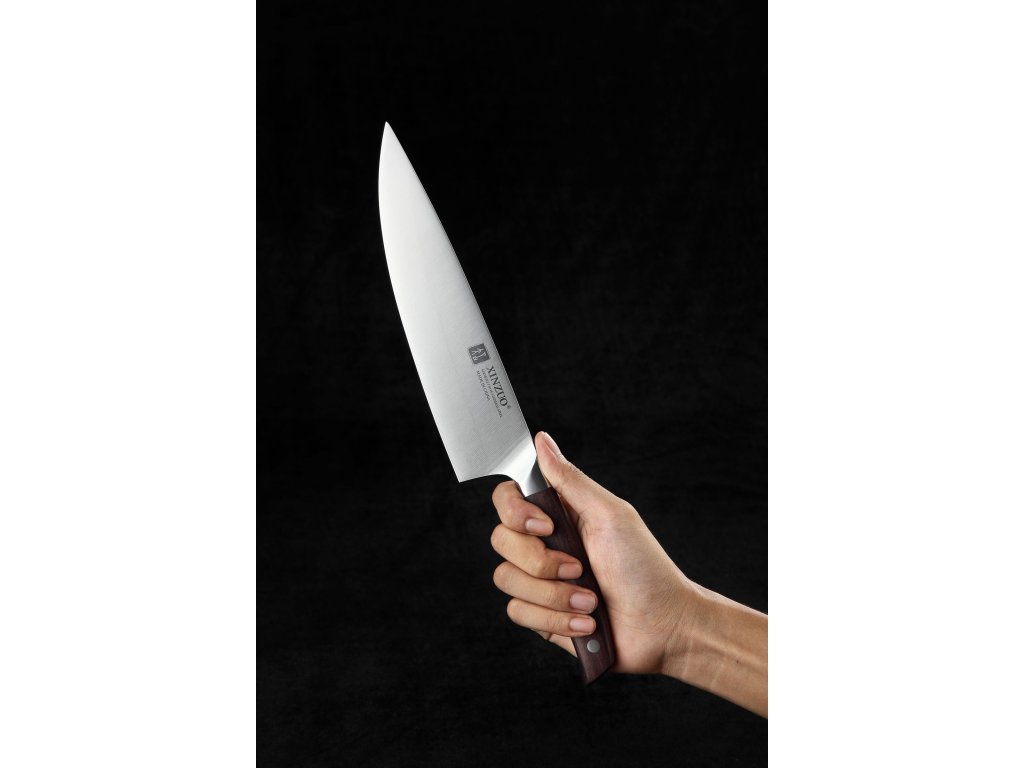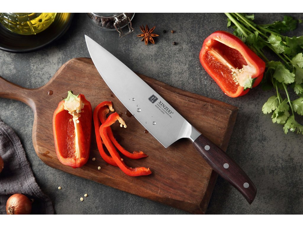 Das XinZuo B35 Zhi, 20 cm ist ein erschwingliches Kochmesser aus hochwertigem deutschem Stahl mit Griff aus Sandelholz.