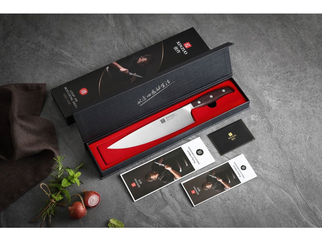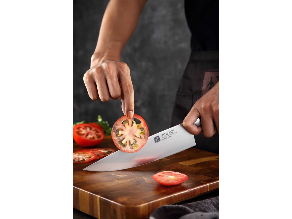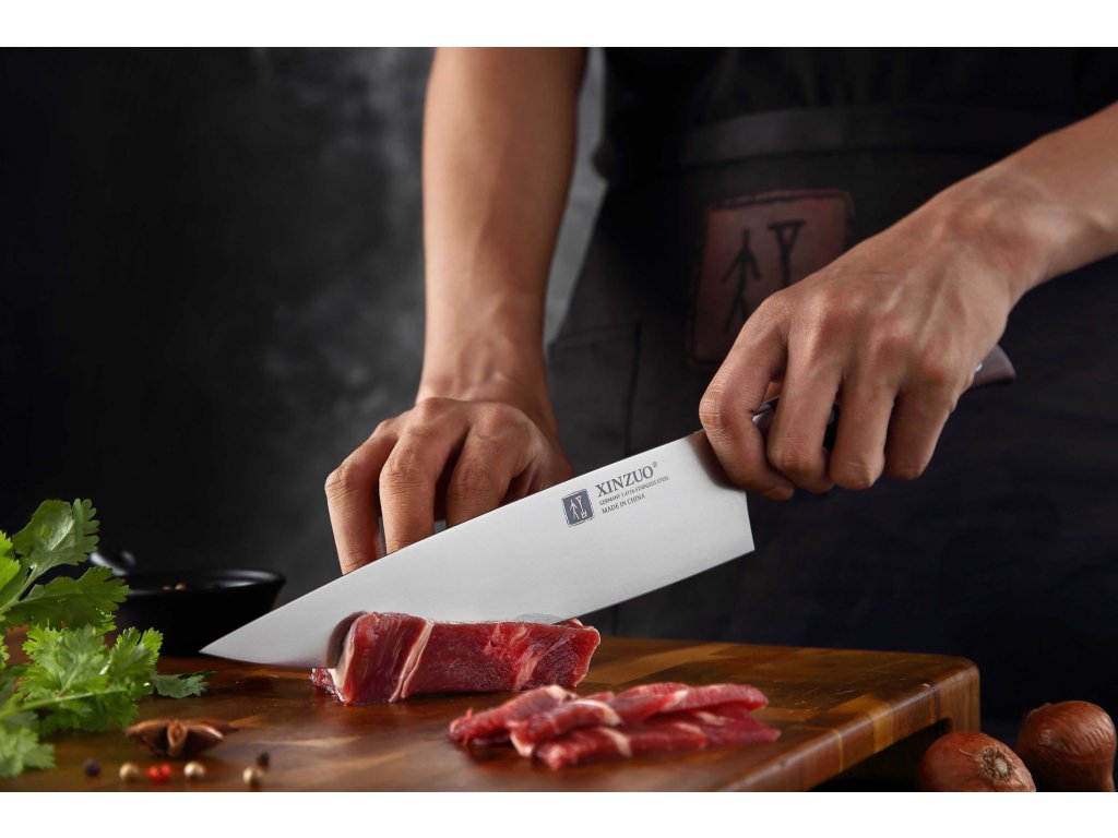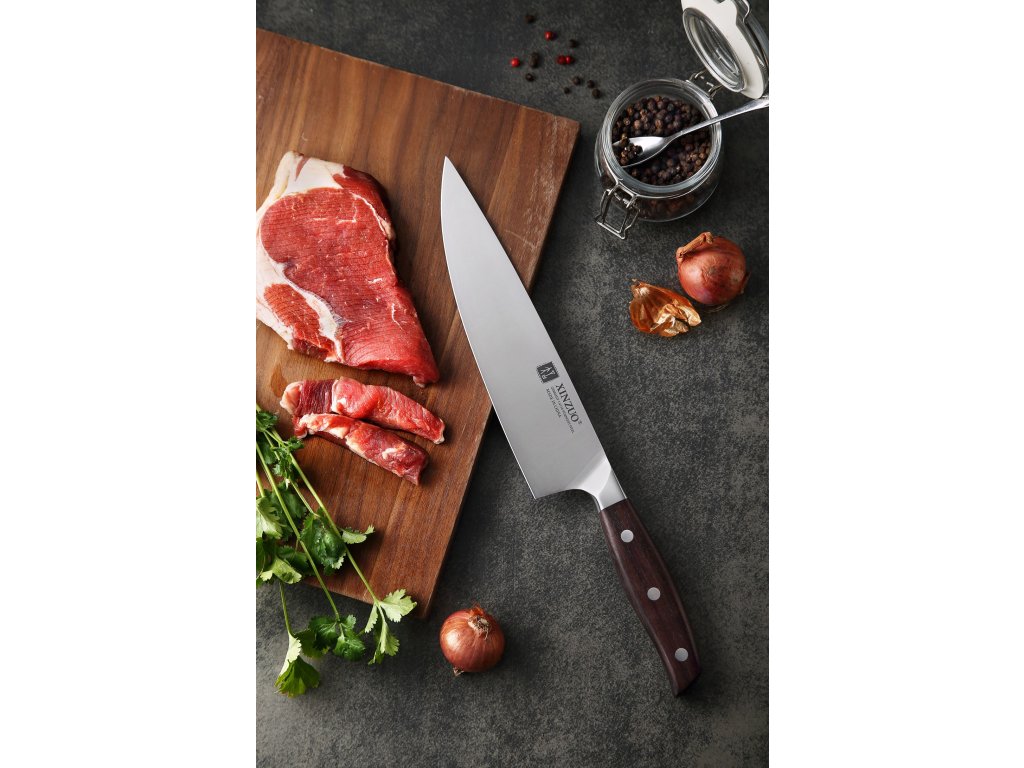 Das XinZuo B35 Zhi, 20 cm ist ein erschwingliches Kochmesser aus hochwertigem deutschem Stahl mit Griff aus Sandelholz.