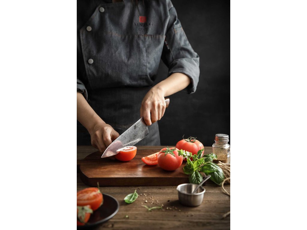 Ein universeller Helfer für jeden Koch. Kochmesser werden wegen ihrer Vielseitigkeit geschätzt. Wenn es ein Messer gibt, das in keinem Haushalt fehlen sollte, dann ist es dieses. Dank seiner Vielseitigkeit kann es mehrere Spezialmesser ersetzen und gilt somit als ein unverzichtbarer Helfer in der Küche. Sie erhalten einen zuverlässigen Partner für die tägliche Gerichtszubereitung. Die Form der Klinge und der Schneide dienen zum Schneiden von Obst, Gemüse und Fleisch.