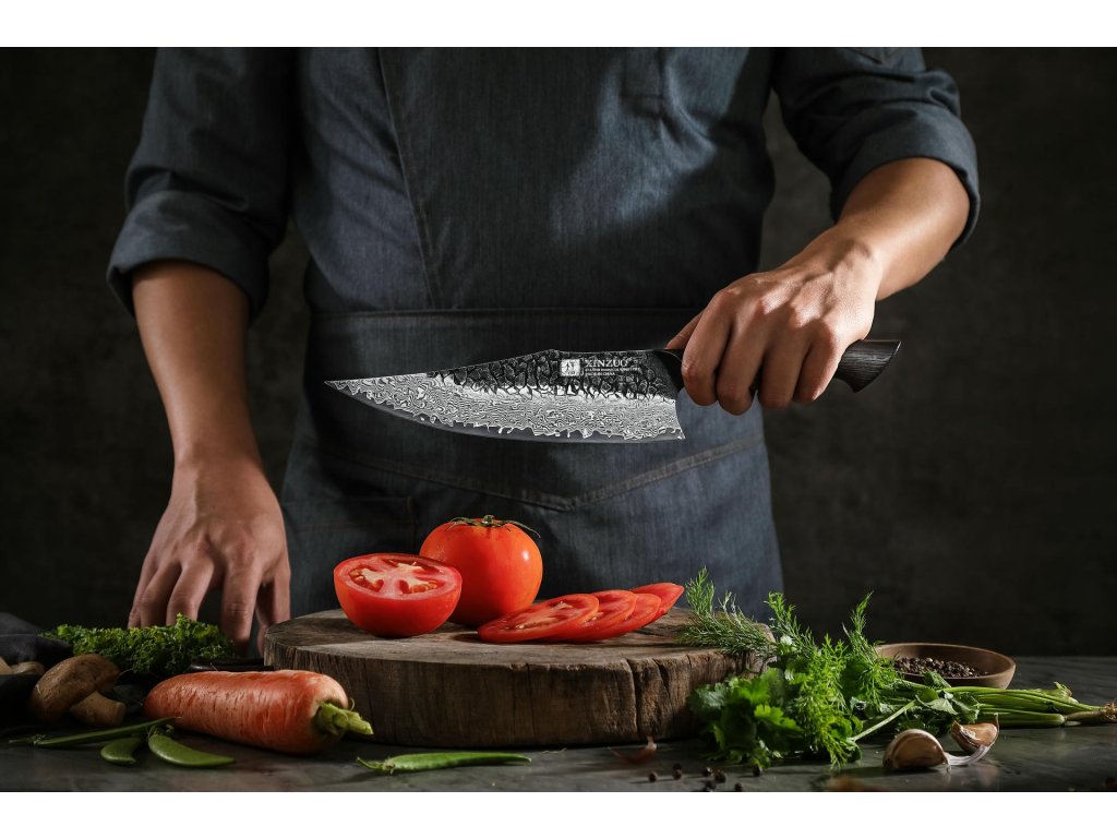 Merkwürdigkeit: Als ein führender Innovator in der Herstellung von Küchenmessern kombiniert XinZuo traditionelle und modernste Fertigungstechniken. Dank der hochmodernen Vakuum-Wärmebehandlungsmethode haben XinZuo Küchenmesser eine höhere Härte und Schärfe sowie eine längere Lebensdauer als Messer, die nur durch herkömmliche Wärmebehandlung hergestellt werden. Gepaart mit dem traditionellen letzten Schleifen der Messer von Hand durch Messermachermeister, deren über Generationen weitergegebenes Können von keiner Maschine übertroffen wird, haben XinZuo Küchenmesser eine erstklassige Schärfe, die maschinell geschliffene Messer nie erreichen können.
