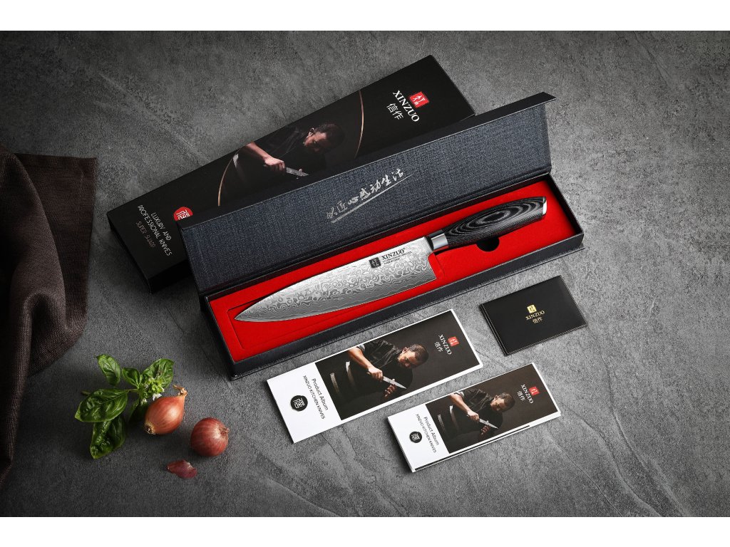 Das Messer XinZuo Ya B20 ist in einer luxuriösen Geschenkbox verpackt und eignet sich somit als ein ideales praktisches Geschenk. Das luxuriöse Design der Geschenkbox und das hochwertige XinZuo Messer im Set wird jeden Beschenkten Freude machen.