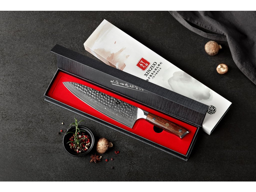 Das Kochmesser XinZuo Yu B13D 21 cm stammt aus der traditionellen chinesischen Messerstadt Yangjiang, wo seit Jahrhunderten die feinsten Messer hergestellt werden. Die lokalen Messerschmiede haben ihre Fertigkeiten in der Messerherstellung und -bearbeitung von Generation zu Generation weitergegeben. XinZuo nutzt das Beste aus der modernen und traditionellen Messerherstellung, um dieses Messer herzustellen. Jedes Messer von XinZuo ist dank der abschließenden manuellen Präzisionsbearbeitung ein Unikat.