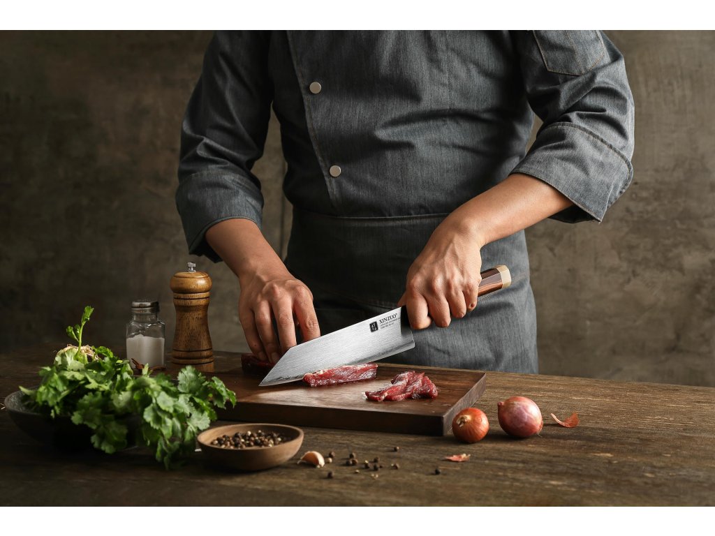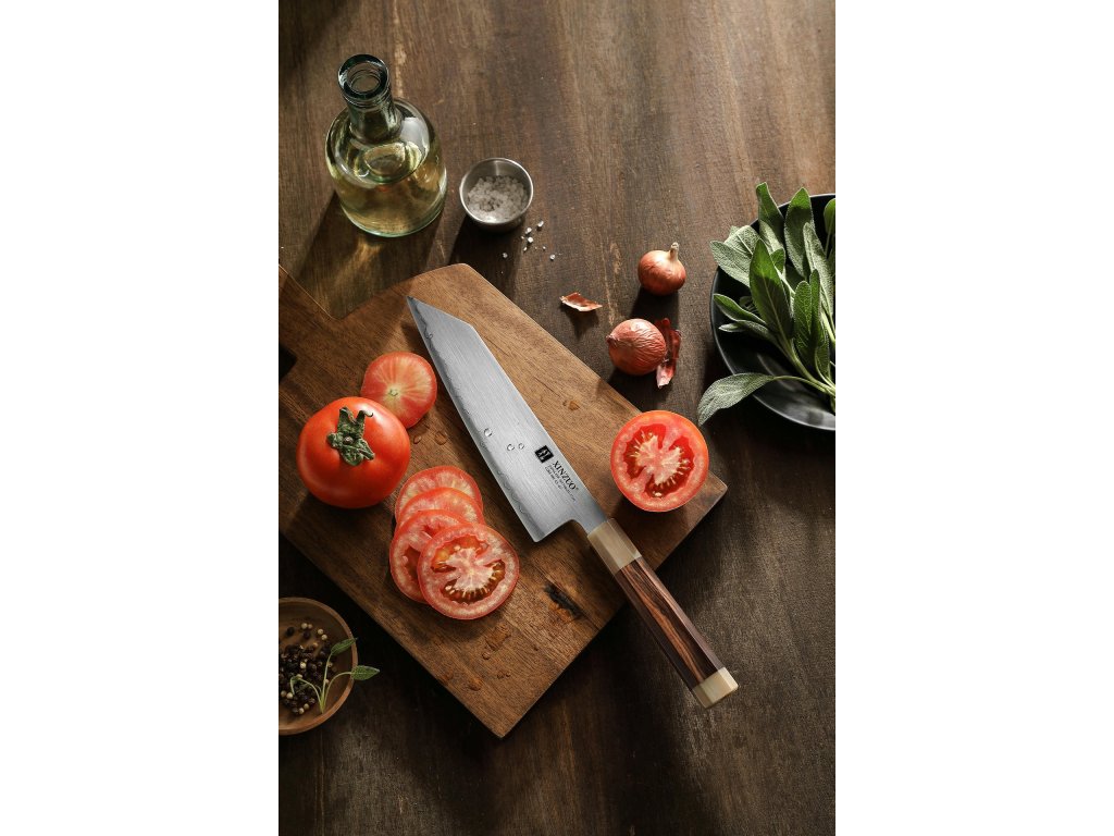 Das Kochmesser Bunka XinZuo Zhen X05Z stammt aus der traditionellen chinesischen Messerstadt Yangjiang, wo seit Jahrhunderten die feinsten Messer hergestellt werden. Die lokalen Messerschmiede haben ihre Fertigkeiten in der Messerherstellung und -bearbeitung von Generation zu Generation weitergegeben. XinZuo nutzt das Beste aus der modernen und traditionellen Messerherstellung, um dieses Messer herzustellen. Jedes Messer von XinZuo ist dank der abschließenden manuellen Präzisionsbearbeitung ein Unikat.