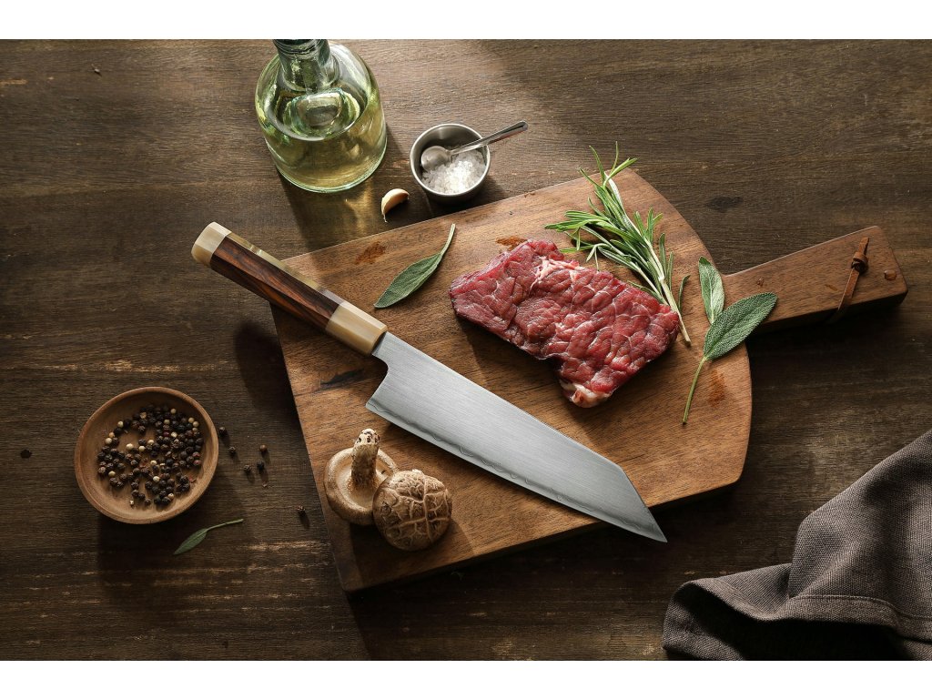 Bunka ist ein spezielles japanisches Kochmesser. Seine spezielle Klingenform kann anderen japanischen Messertypen ähneln. Es ist ein Universalmesser, das Sie nicht nur beim Fleisch schneiden, sondern auch beim Gemüse schneiden schätzen werden. Mit dem Bunka Messer können Sie ganz einfach Gemüse in dünne Streifen schneiden, die bei der Zubereitung asiatischer Spezialitäten berühmt sind. Es schneidet Karotten, gelbe Radieschen oder Gurken mühelos in Streifen, mit denen Sie dann berühmte Frühlingsrollen oder Sushi zubereiten können.