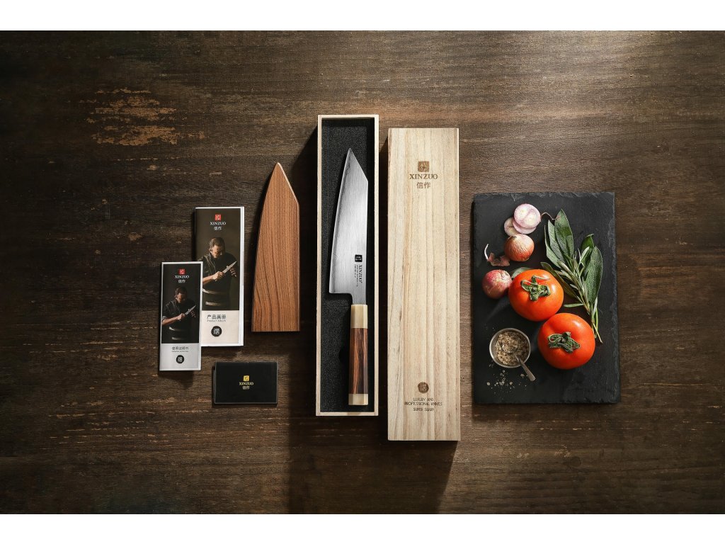 Die Messerserie XinZuo Zhen X05Z ist eine Hommage an den traditionellen japanischen Stil von Küchenmessern und kombiniert diesen mit einem modernen Materialkonzept. Die Klinge zeichnet sich durch japanischen Minimalismus ohne ablenkende Muster aus und besteht aus echtem japanischem ZDP-189 Stahl mit einer überdurchschnittlichen Härte von 65-67 HRC. Dies garantiert eine außergewöhnliche Schärfe. Der traditionelle achteckige Griff, der mit japanischen Messern assoziiert wird, unterstreicht ihr authentisches Aussehen. Mit diesen Messern zu schneiden bedeutet nicht nur Freude, sondern auch Stolz. Die Besonderheit der gesamten Serie krönt eine edle Holzbox.