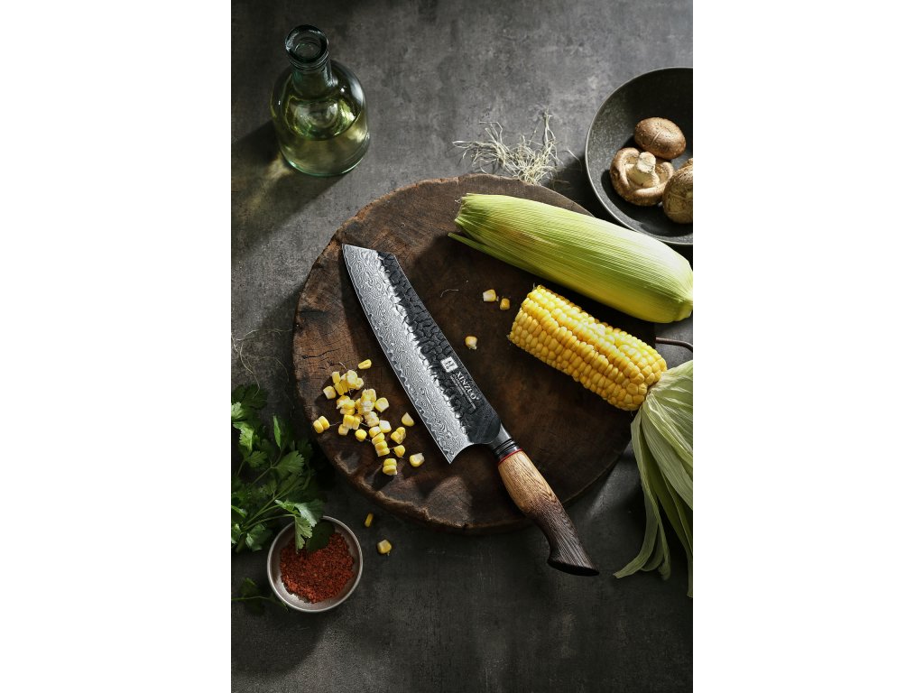 Bunka ist ein spezielles japanisches Kochmesser. Seine spezielle Klingenform kann anderen japanischen Messertypen ähneln. Es ist ein Universalmesser, das Sie nicht nur beim Fleisch schneiden, sondern auch beim Gemüse schneiden schätzen werden. Mit dem Bunka Messer können Sie ganz einfach Gemüse in dünne Streifen schneiden, die bei der Zubereitung asiatischer Spezialitäten berühmt sind. Es schneidet Karotten, gelbe Radieschen oder Gurken mühelos in Streifen, mit denen Sie dann berühmte Frühlingsrollen oder Sushi zubereiten können.