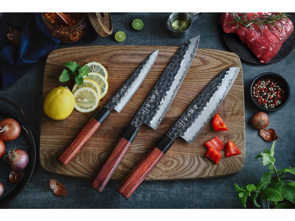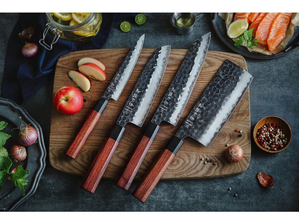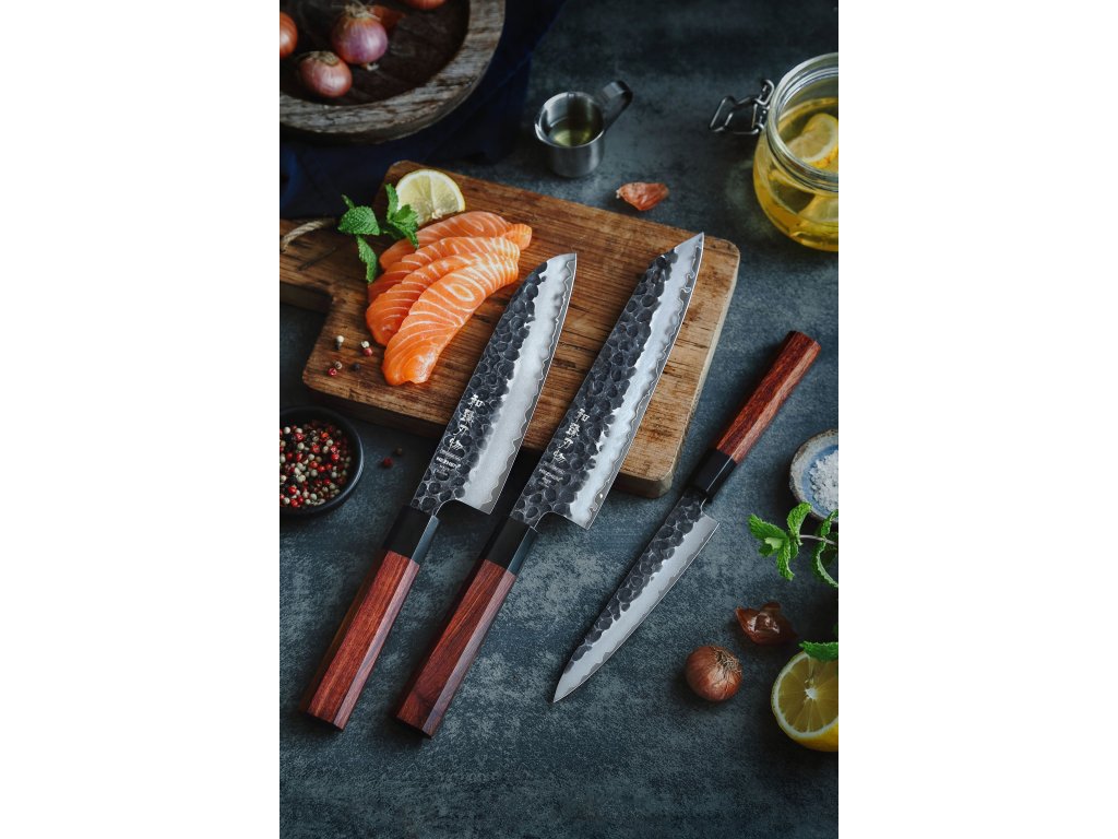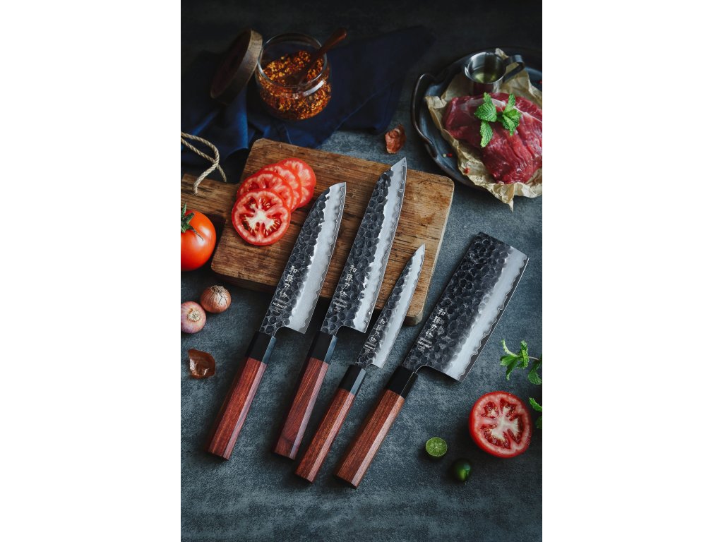 | Messer im Set: | Santoku, Kochmesser, Gemüsemesser, Nakiri |