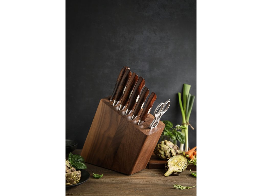 Geflügelscheren Diamant-Wetzstahl Messerblock aus Walnussholz |