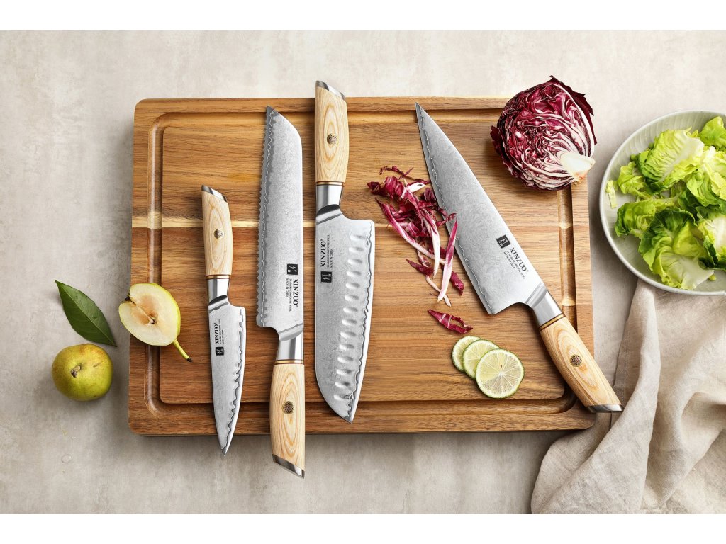 | Messer im Set: | Santoku, Kochmesser, Gemüsemesser, Brotmesser |