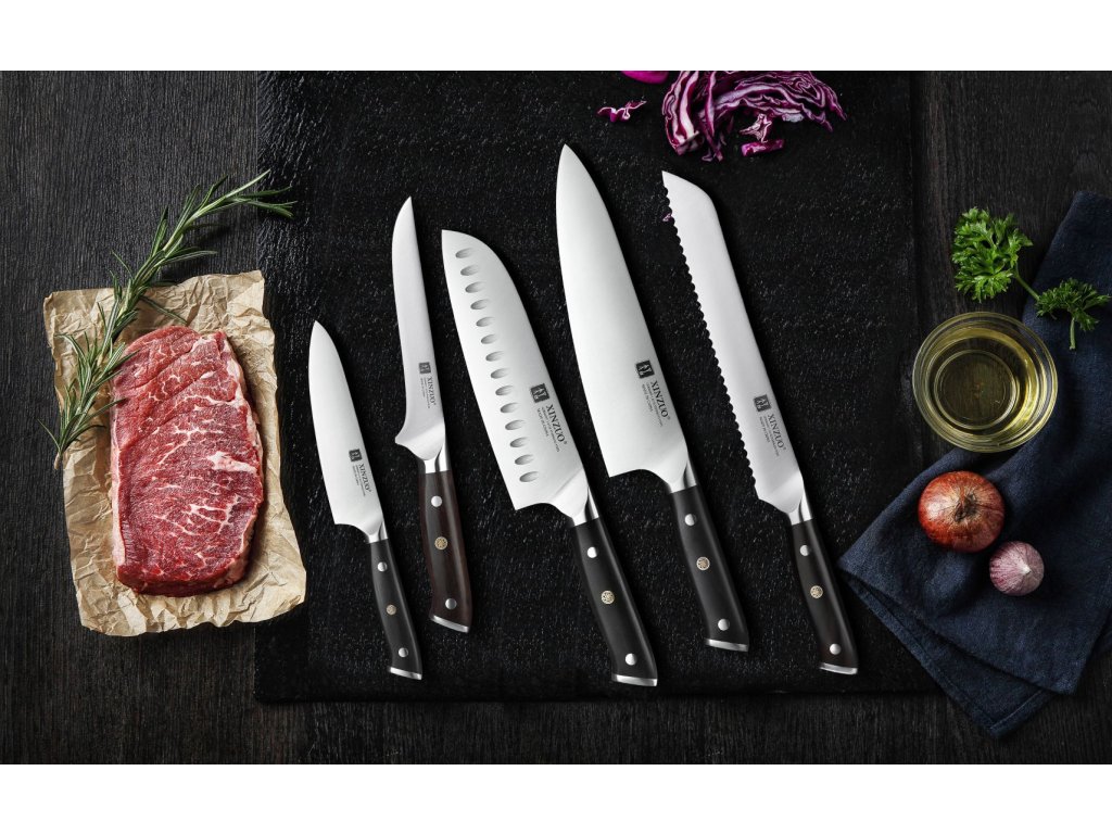 | Messer im Set: | Santoku, Kochmesser, Gemüsemesser, Brotmesser, Ausbeinmesser |