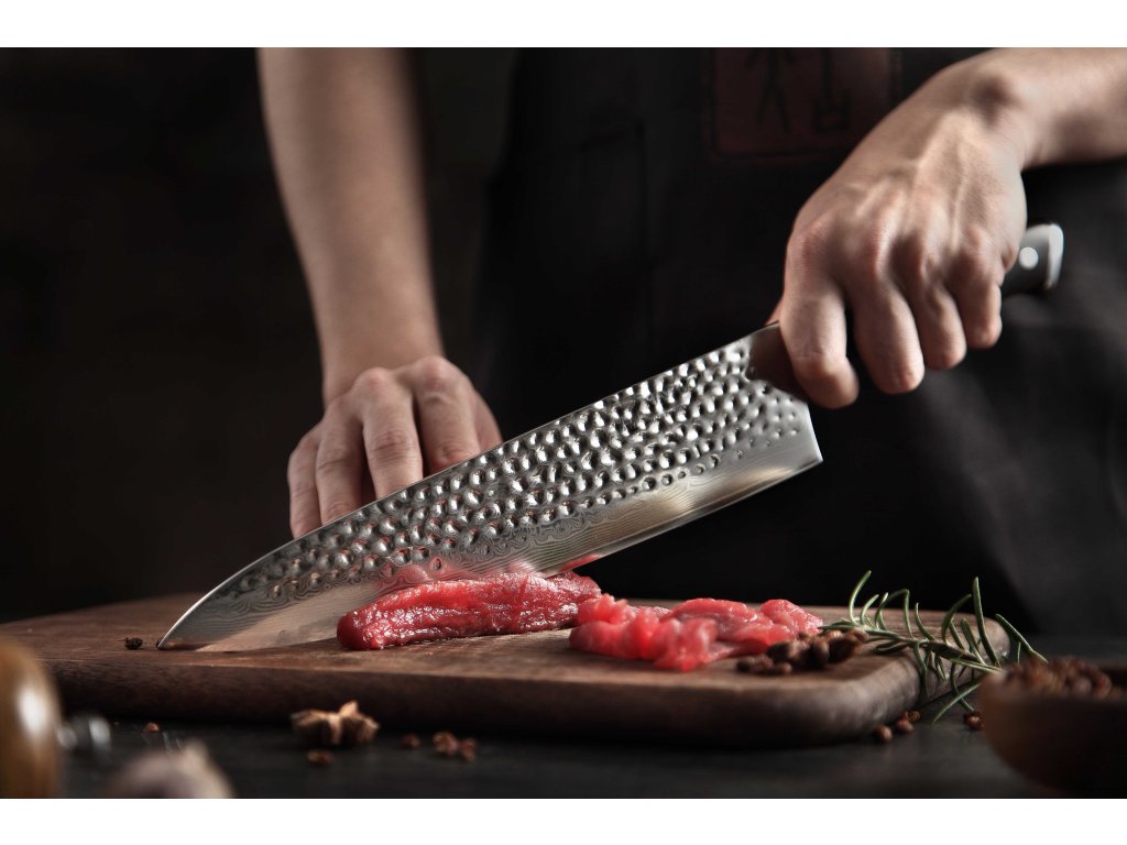 In diesem Set sind die Messer aus hochwertigem Damaszener Stahl gefertigt, der für die Herstellung der besten Messer verwendet wird. Deren Messerklinge mit einer Härte von 60±2 Rockwell besteht aus 67 Schichten. Hochwertiger Stahl in einer Kombination von traditioneller Herstellung garantiert eine lange Lebensdauer des Messers. Die Oberfläche des Messers bietet beim Schneiden Komfort, ohne dass es reibt oder dass die Zutaten an die Klinge pappen. Der Messergriff besteht aus wartungsfreiem Material, das mit der Zeit weder weicher wird noch Geruch annimmt. Dank seiner perfekten Form und Länge wird das Schneiden zum Vergnügen und außerdem liegt das Messer gut in der Hand. Aufgrund des natürlichen Griff-Designs kann die Farbe und das Design leicht von den Produktbildern abweichen, da der Griff aus einem anderen Holzstück gefertigt wurde oder da das Alter des Holzes unterschiedlich ist. Der Farbton des Musters auf der Klinge kann von den Produktfotos abweichen, da jedes Messer durch das Stahlschichten einzigartig ist. Das Set enthält einen Magnet-Messerblock aus Akazienholz mit Gummifüßen, die das Verrutschen verhindern.