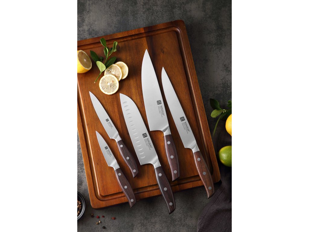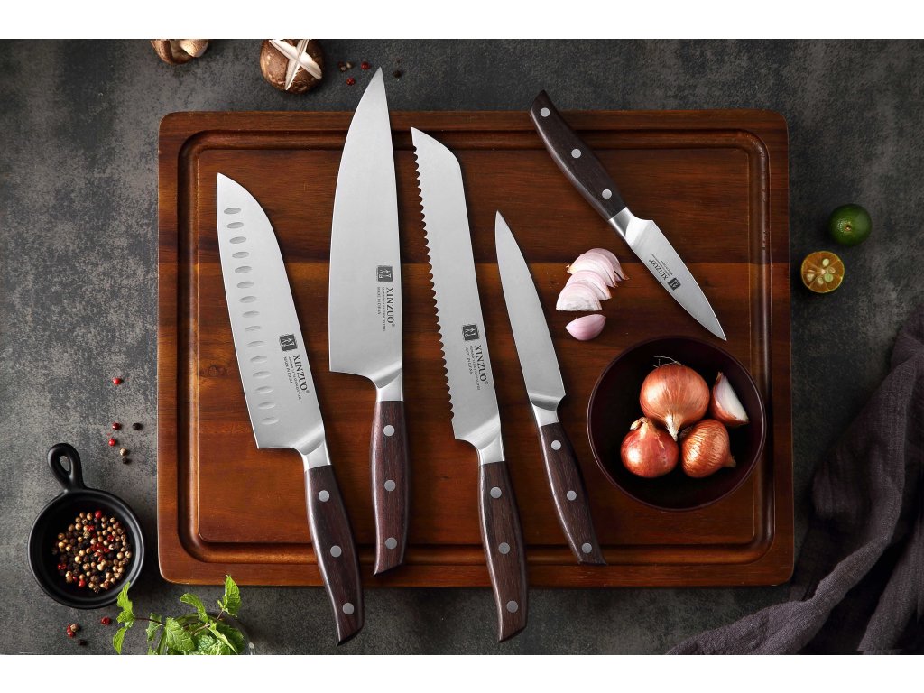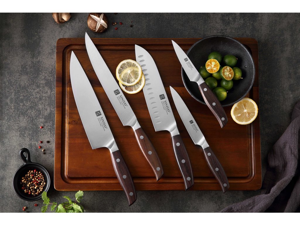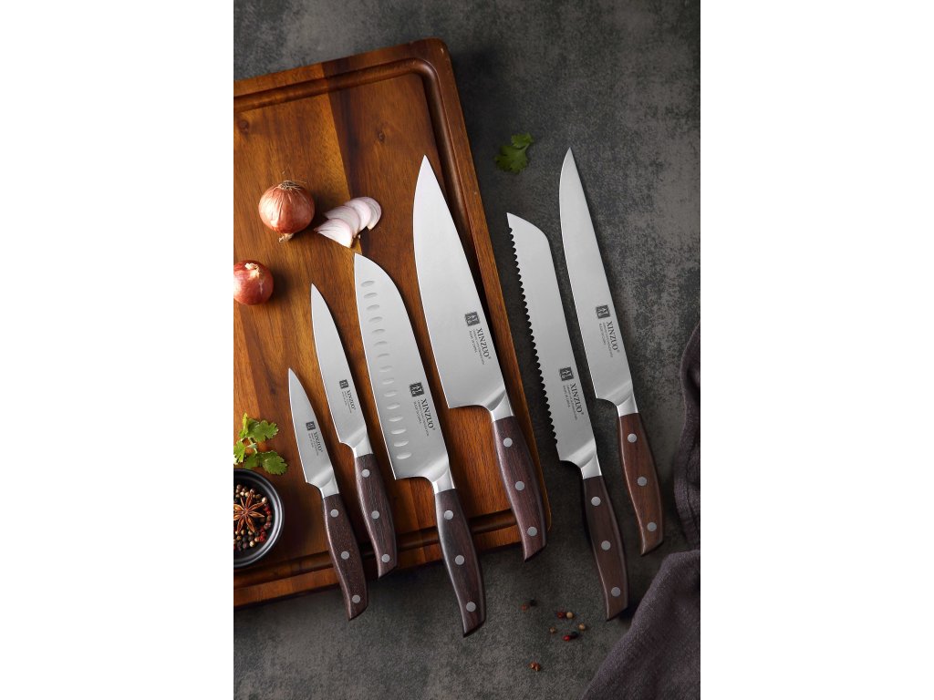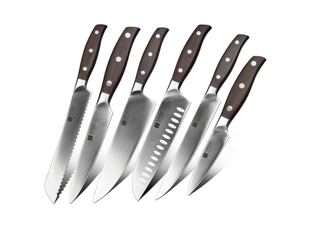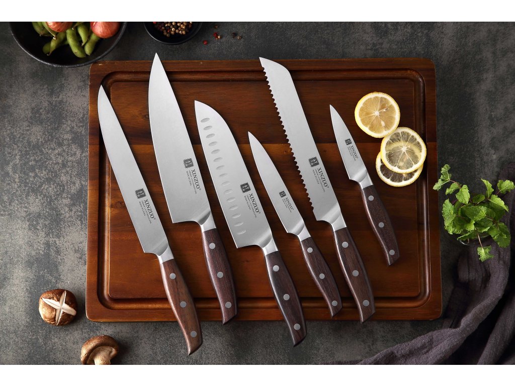 Großes 6-teiliges Messerset XinZuo Zhi B35 aus hochwertigem deutschem Stahl mit handgefertigten Klingen, die traumhaft scharf sind.