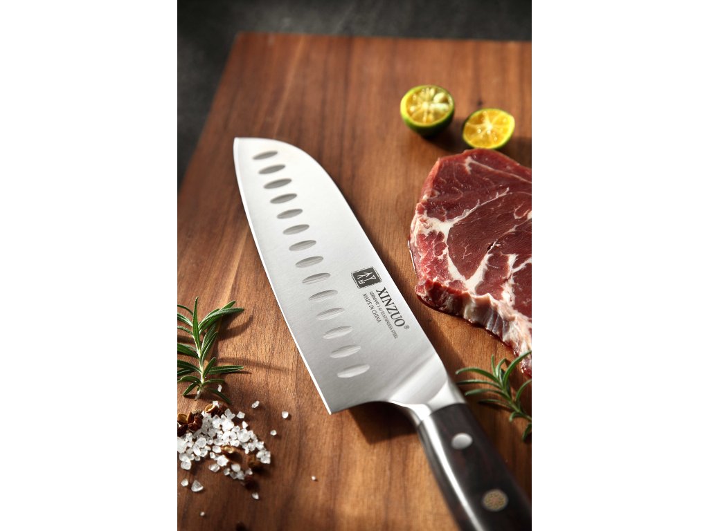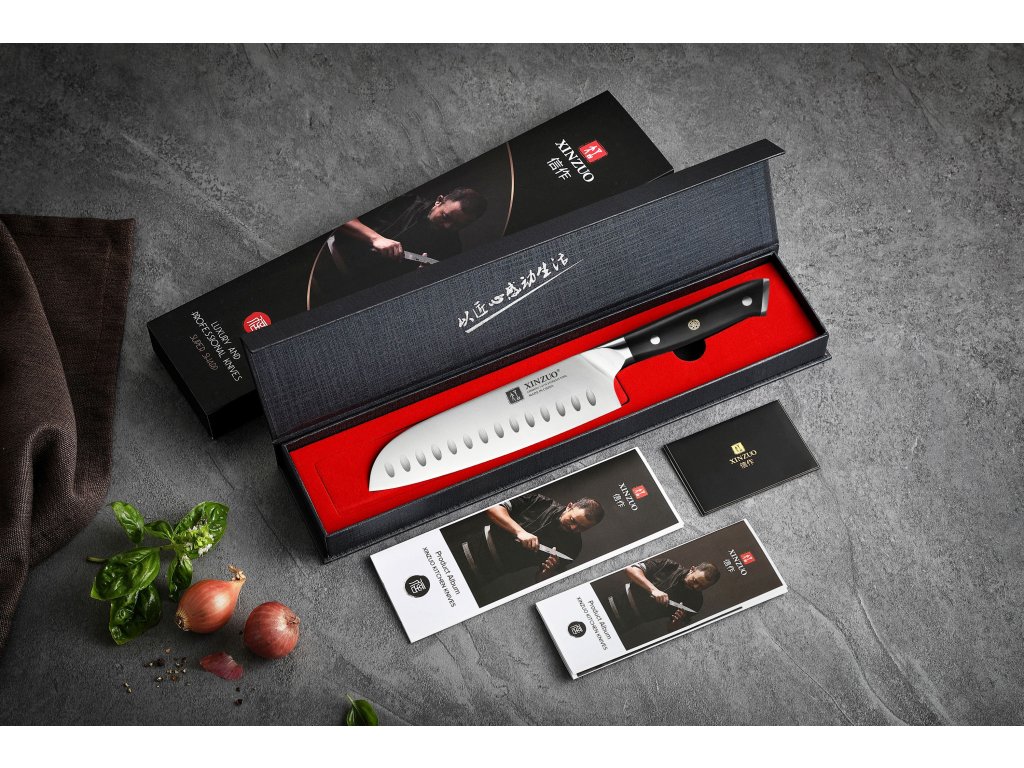 Merkwürdigkeit: Als ein führender Innovator in der Herstellung von Küchenmessern kombiniert XinZuo traditionelle und modernste Fertigungstechniken. Dank der hochmodernen Vakuum-Wärmebehandlungsmethode haben XinZuo Küchenmesser eine höhere Härte und Schärfe sowie eine längere Lebensdauer als Messer, die nur durch herkömmliche Wärmebehandlung hergestellt werden. Gepaart mit dem traditionellen letzten Schleifen der Messer von Hand durch Messermachermeister, deren über Generationen weitergegebenes Können von keiner Maschine übertroffen wird, haben XinZuo Küchenmesser eine erstklassige Schärfe, die maschinell geschliffene Messer nie erreichen können.