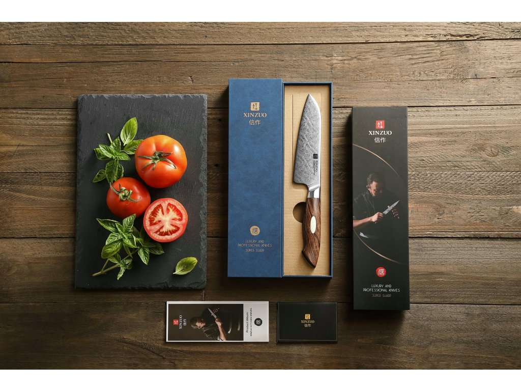 Das Messer XinZuo Jiang B46D ist in einer luxuriösen Geschenkbox verpackt und eignet sich somit als ein ideales praktisches Geschenk. Das luxuriöse Design der Geschenkbox und das hochwertige XinZuo Messer im Set wird jeden Beschenkten Freude machen.