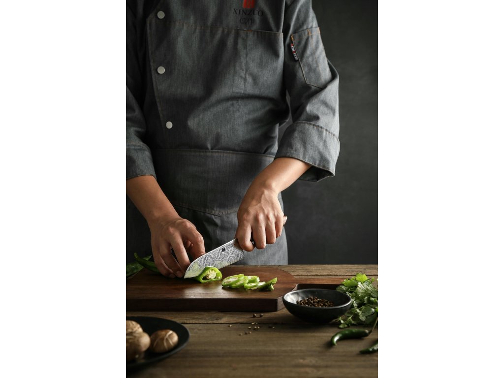 Merkwürdigkeit: Als ein führender Innovator in der Herstellung von Küchenmessern kombiniert XinZuo traditionelle und modernste Fertigungstechniken. Dank der hochmodernen Vakuum-Wärmebehandlungsmethode haben XinZuo Küchenmesser eine höhere Härte und Schärfe sowie eine längere Lebensdauer als Messer, die nur durch herkömmliche Wärmebehandlung hergestellt werden. Gepaart mit dem traditionellen letzten Schleifen der Messer von Hand durch Messermachermeister, deren über Generationen weitergegebenes Können von keiner Maschine übertroffen wird, haben XinZuo Küchenmesser eine erstklassige Schärfe, die maschinell geschliffene Messer nie erreichen können.