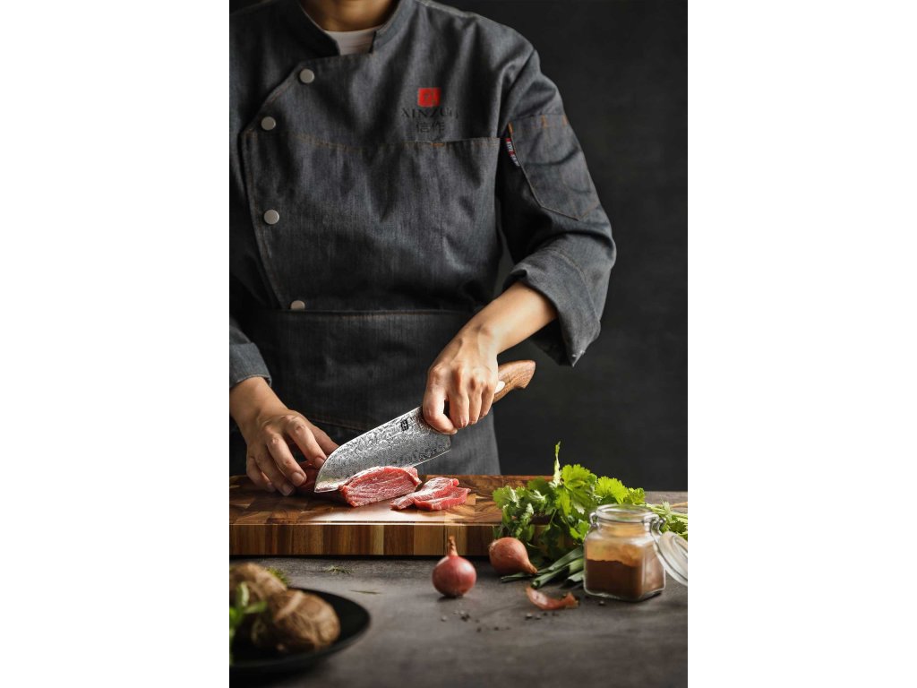 Merkwürdigkeit: Als ein führender Innovator in der Herstellung von Küchenmessern kombiniert XinZuo traditionelle und modernste Fertigungstechniken. Dank der hochmodernen Vakuum-Wärmebehandlungsmethode haben XinZuo Küchenmesser eine höhere Härte und Schärfe sowie eine längere Lebensdauer als Messer, die nur durch herkömmliche Wärmebehandlung hergestellt werden. Gepaart mit dem traditionellen letzten Schleifen der Messer von Hand durch Messermachermeister, deren über Generationen weitergegebenes Können von keiner Maschine übertroffen wird, haben XinZuo Küchenmesser eine erstklassige Schärfe, die maschinell geschliffene Messer nie erreichen können.