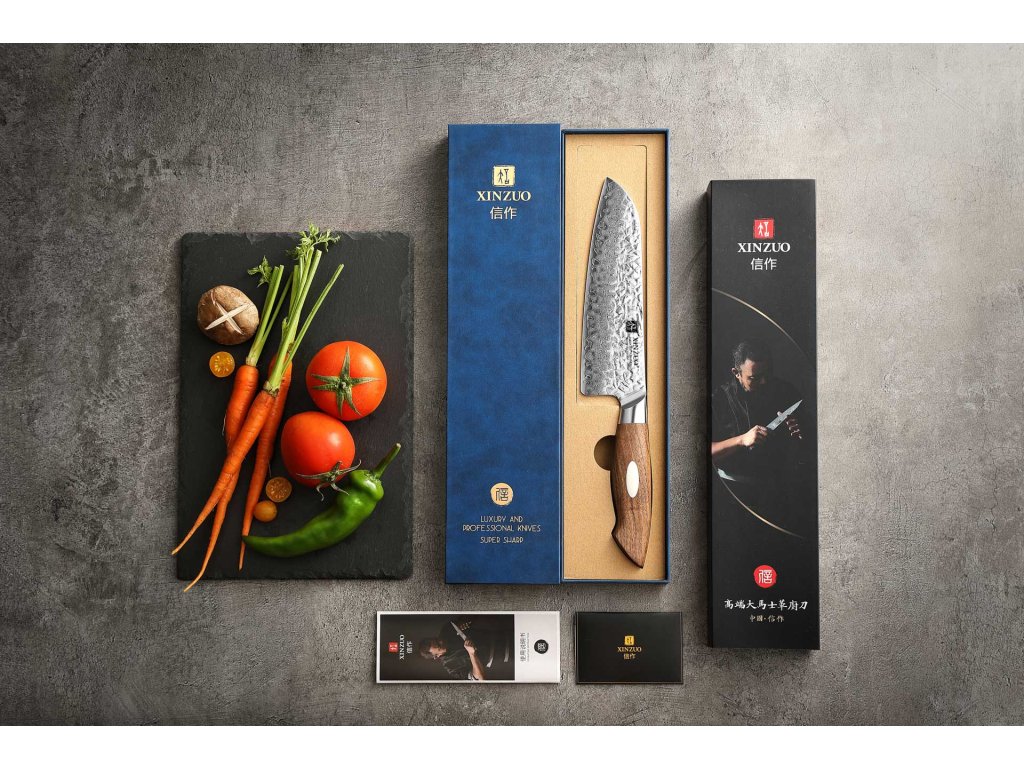 Das XinZuo Jiang B46W ist in einer eleganten, umweltfreundlichen Box verpackt, die sie zu einem idealen, praktischen Haushaltsgeschenk macht. Die Box dieser Messerserie basiert auf umweltfreundlichen Materialien und Umweltfreundlichkeit und hat ein einheitliches, elegantes Design. Das hochwertige Messer von XinZuo in solch einer Box wird jedem Beschenken Freude machen.