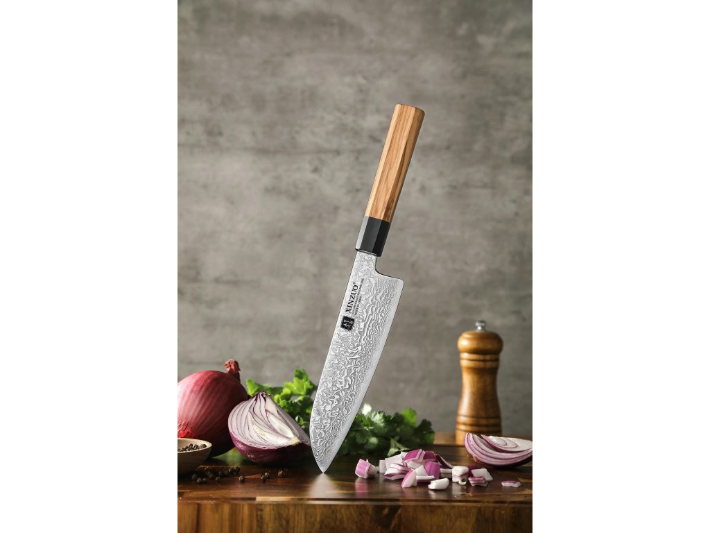 Die Serie Zhen PM8O von XinZuo kombiniert das Beste aus chinesischer Messerkunst und japanischer minimalistischer Eleganz. Auf den ersten Blick besticht es durch eine Damastklinge mit einzigartiger Maserung, die durch das Aufeinanderschichten einzelner Stahlschichten entsteht. Auch die Sicherheit kommt nicht zu kurz, denn dank der praktisch abgerundeten Messerklinge beim Griff schneiden Sie sich nicht in die Finger. Fans der japanischen Messer werden die traditionelle achteckige Form des Griffs besonders gefallen. Die Einzigartigkeit der Griffe liegt nicht nur in seinen Naturmaterialien, sondern auch in ihrem Farbkontrast - die dunkle Farbe des Wasserbüffelhorns und das helle, warme Olivenholz.