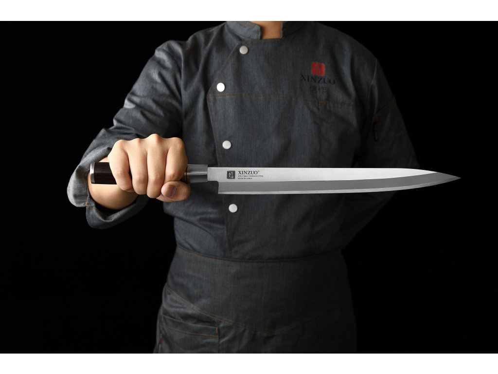 Sashimi Messer XinZuo (mit 300 mm langer Klinge) aus der He-Serie stammt aus der traditionellen chinesischen Messerstadt Yangjiang, wo seit Jahrhunderten die feinsten Messer hergestellt werden. Die lokalen Messerschmiede haben ihre Fertigkeiten in der Messerherstellung und -bearbeitung von Generation zu Generation weitergegeben. XinZuo nutzt das Beste aus der modernen und traditionellen Messerherstellung, um dieses Messer herzustellen. Jedes Messer von XinZuo ist dank der abschließenden manuellen Präzisionsbearbeitung ein Unikat.