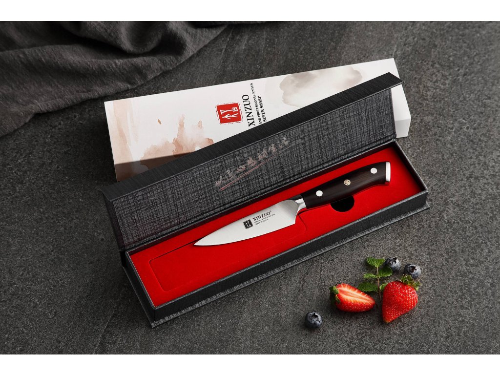 Das Schälmesser XinZuo Yu B13S ist in einer luxuriösen Geschenkbox verpackt und eignet sich somit als ein ideales praktisches Geschenk. Das luxuriöse Design der Geschenkbox und das hochwertige XinZuo Messer im Set wird jeden Beschenkten Freude machen.