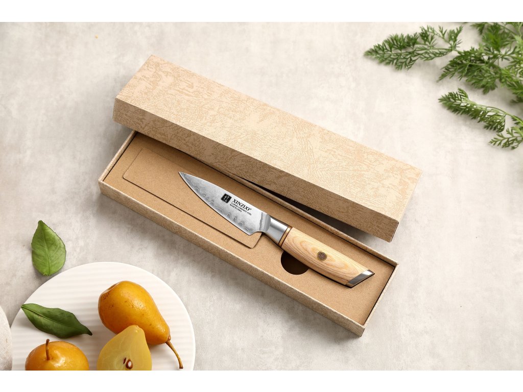 Das XinZuo Messer Lan B37S, 9 cm ist in einer eleganten, umweltfreundlichen Box verpackt, die sie zu einem idealen, praktischen Haushaltsgeschenk macht. Die Box dieser Messerserie basiert auf umweltfreundlichen Materialien und Umweltfreundlichkeit und hat ein einheitliches, elegantes Design. Das hochwertige Messer von XinZuo in solch einer Box wird jedem Beschenken Freude machen.