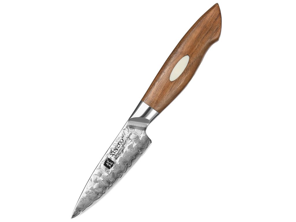 Luxuriöses handgefertigtes Schälmesser XinZuo der Serie B46W, Klinge aus berühmtem japanischem AUS10-Stahl und elegantem Walnussholzgriff, in einer Geschenkbox verpackt.