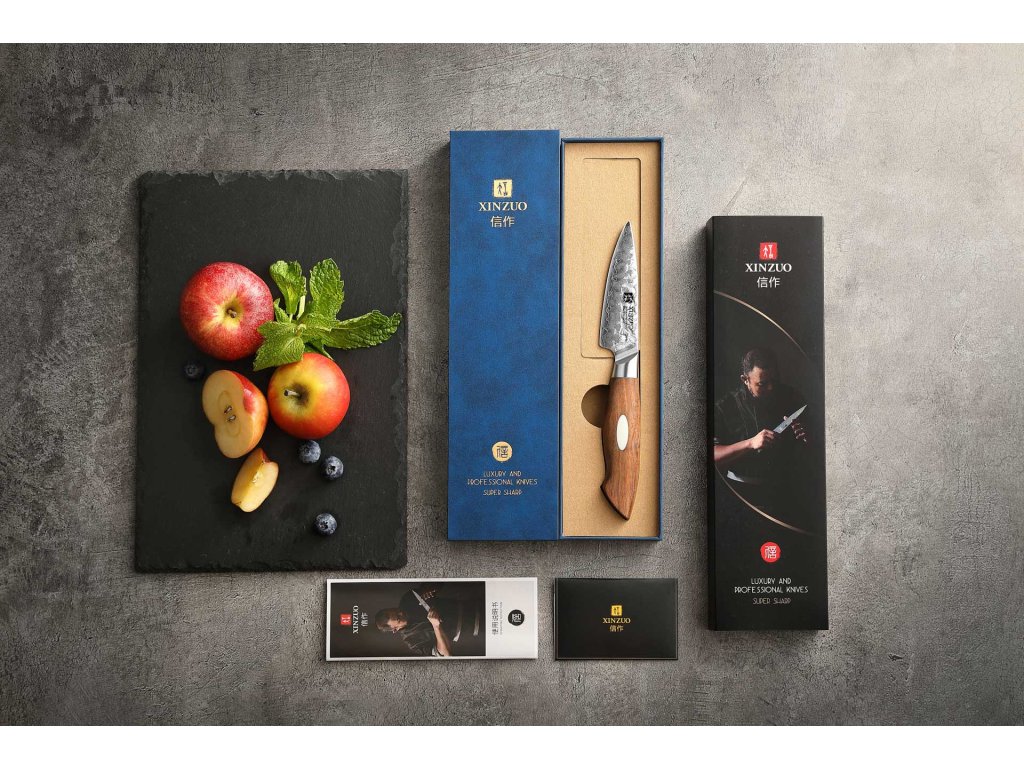 Das Schälmesser XinZuo Jiang B46W ist in einer luxuriösen Geschenkbox verpackt und eignet sich somit als ein ideales praktisches Geschenk. Das luxuriöse Design der Geschenkbox und das hochwertige XinZuo Messer im Set wird jeden Beschenkten Freude machen.