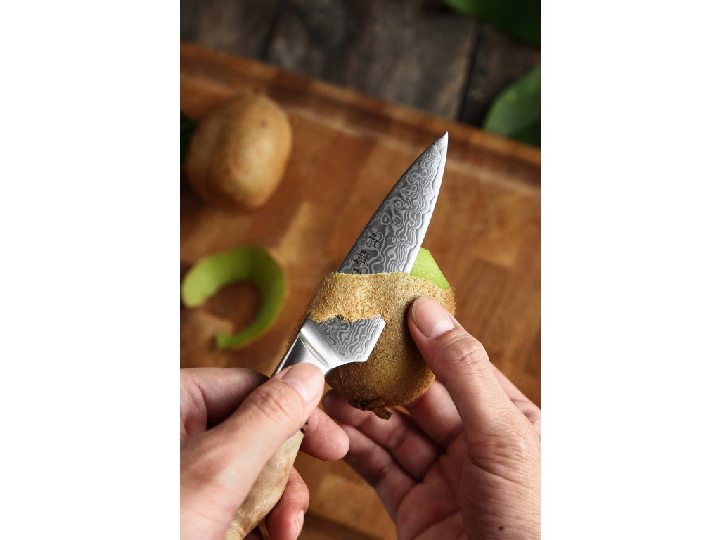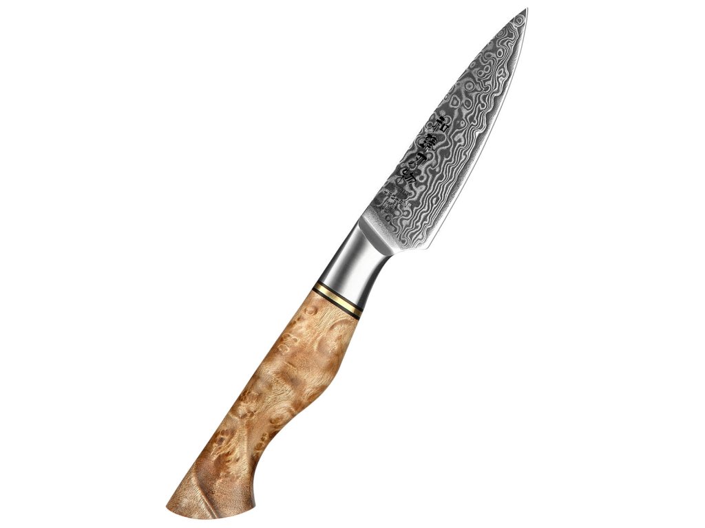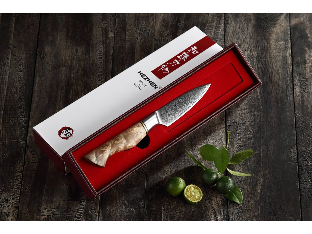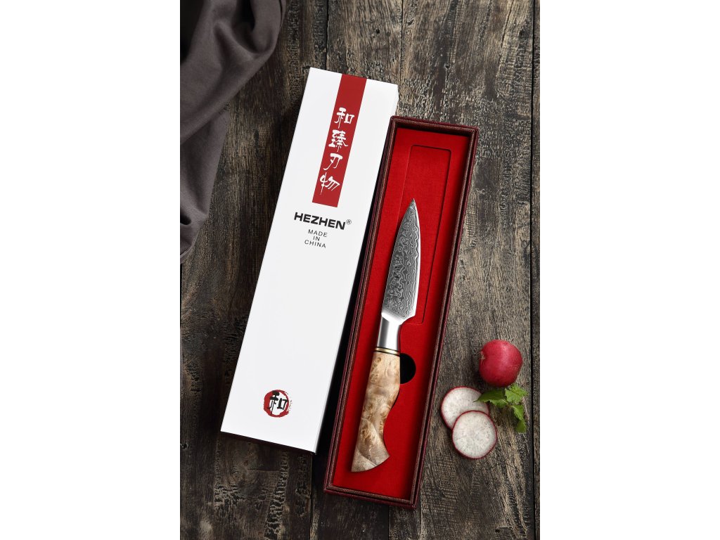 Schälmesser HEZHEN Master B30, 9 cm, Klinge aus hochwertigem Damaststahl und eleganter ergonomischer Griff zum einfachen Schälen von Obst und Gemüse.