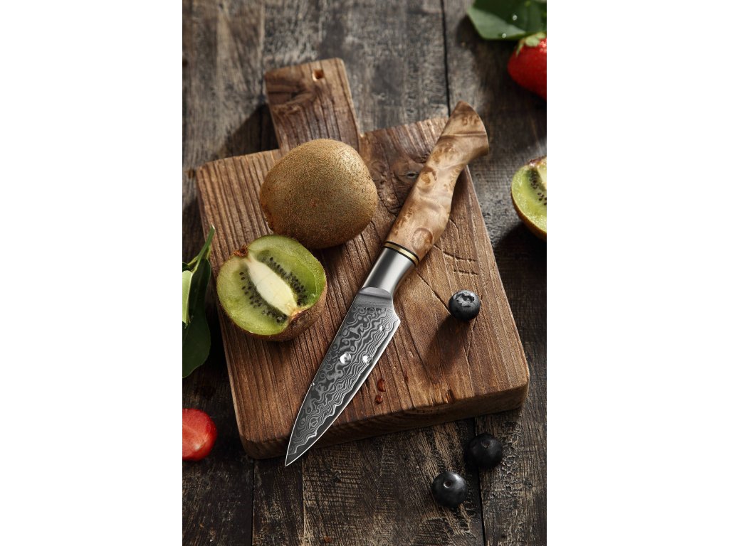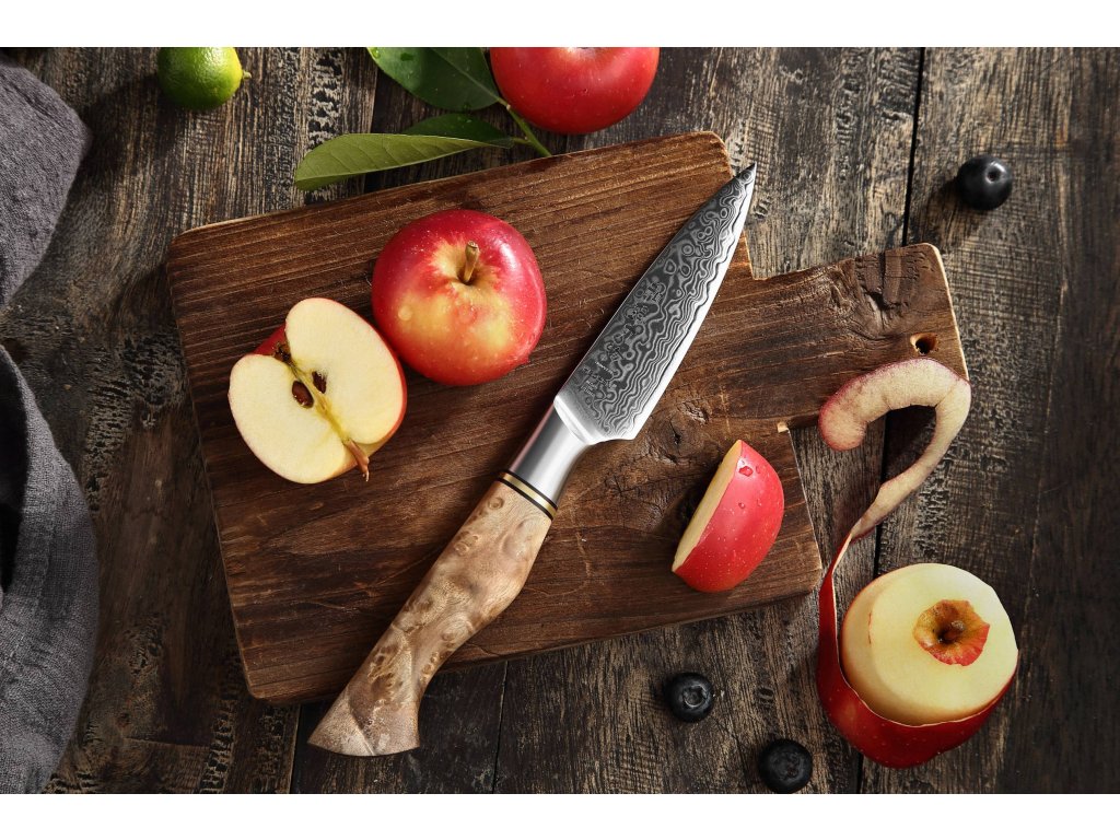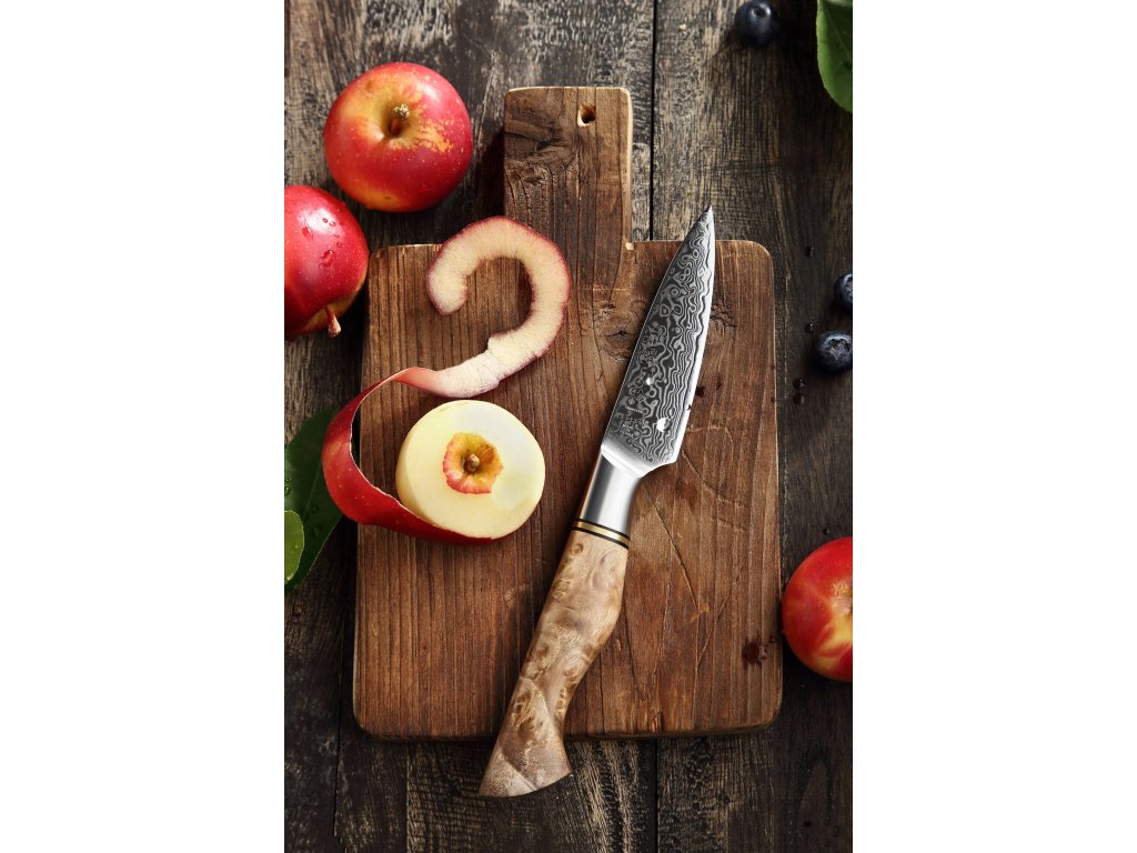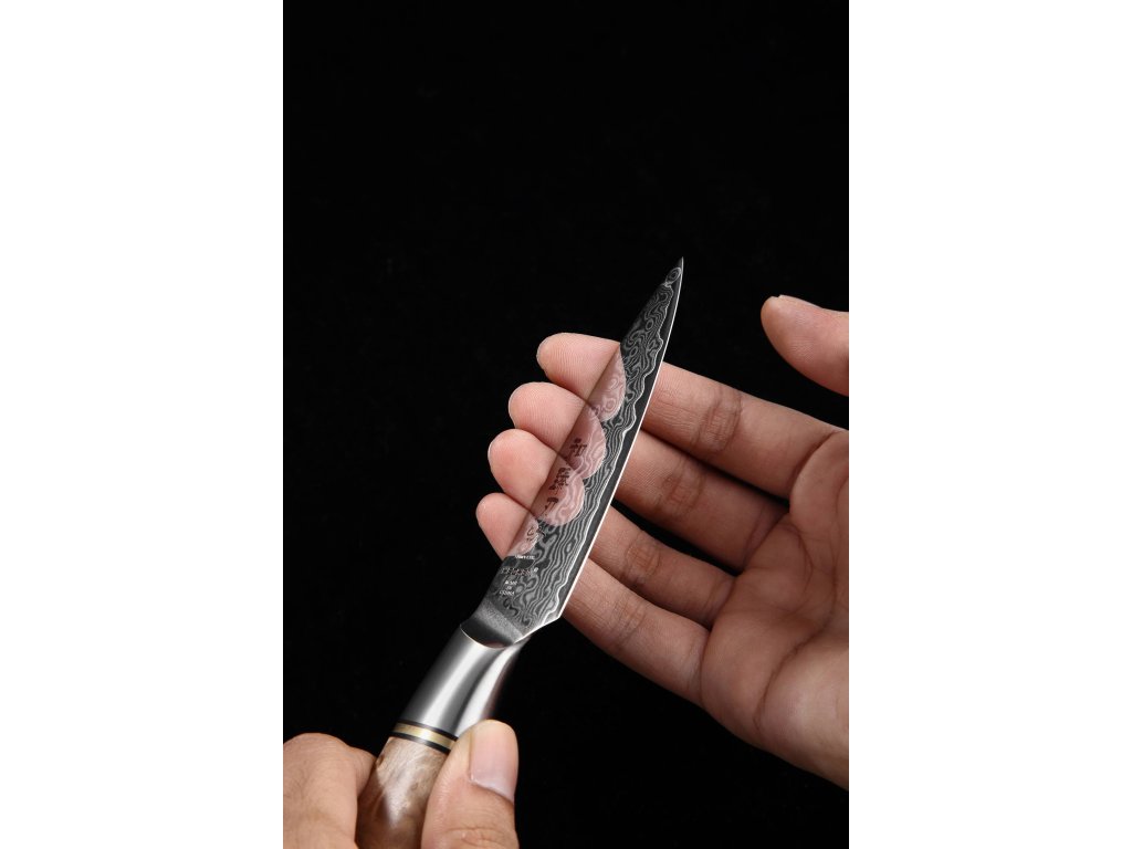 Schälmesser HEZHEN Master B30, 9 cm, Klinge aus hochwertigem Damaststahl und eleganter ergonomischer Griff zum einfachen Schälen von Obst und Gemüse.