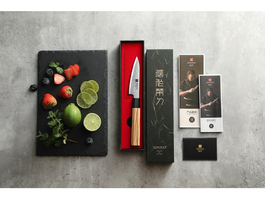 Das Schälmesser XinZuo Zhen PM8O ist in einer luxuriösen Geschenkbox verpackt und eignet sich somit als ein ideales praktisches Geschenk. Das luxuriöse Design der Geschenkbox und das hochwertige XinZuo Messer im Set wird jeden Beschenkten Freude machen.