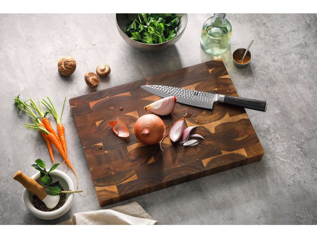 Das Schneidebrett bietet eine sehr große Schneidefläche mit den Maßen 43 cm x 30,5 cm. Sein Gewicht von ca. 2,8 kg garantiert das Brett eine perfekte Stabilität auf der Küchenarbeitsfläche hat. Die Farbe und sein Design können aufgrund der Herstellung eines anderen Stücks Akazienholz oder des unterschiedlichen Alters des Holzes leicht von den Produktbildern abweichen.